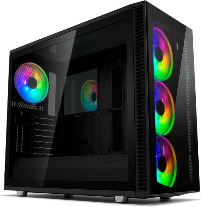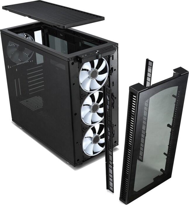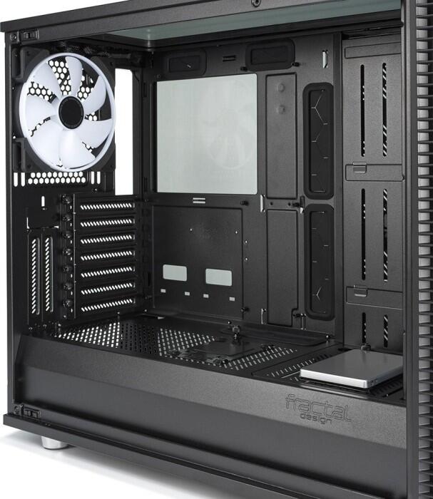 Elegante, vielseitige BeleuchtungDas Äußere des Gehäuses besteht fast vollständig aus Tempered Glass und erlaubt, die ganze Eleganz des Systems aus jedem Blickwinkel zu genießen. Ausgerüstet mit vier Fractal Design Prisma AL-14 PWM ARGB Lüftern und AR-4020 ARGB LED Strip bietet das Define S2 Vision RGB eine ebenso vielseitige, wie stilvolle Beleuchtung.