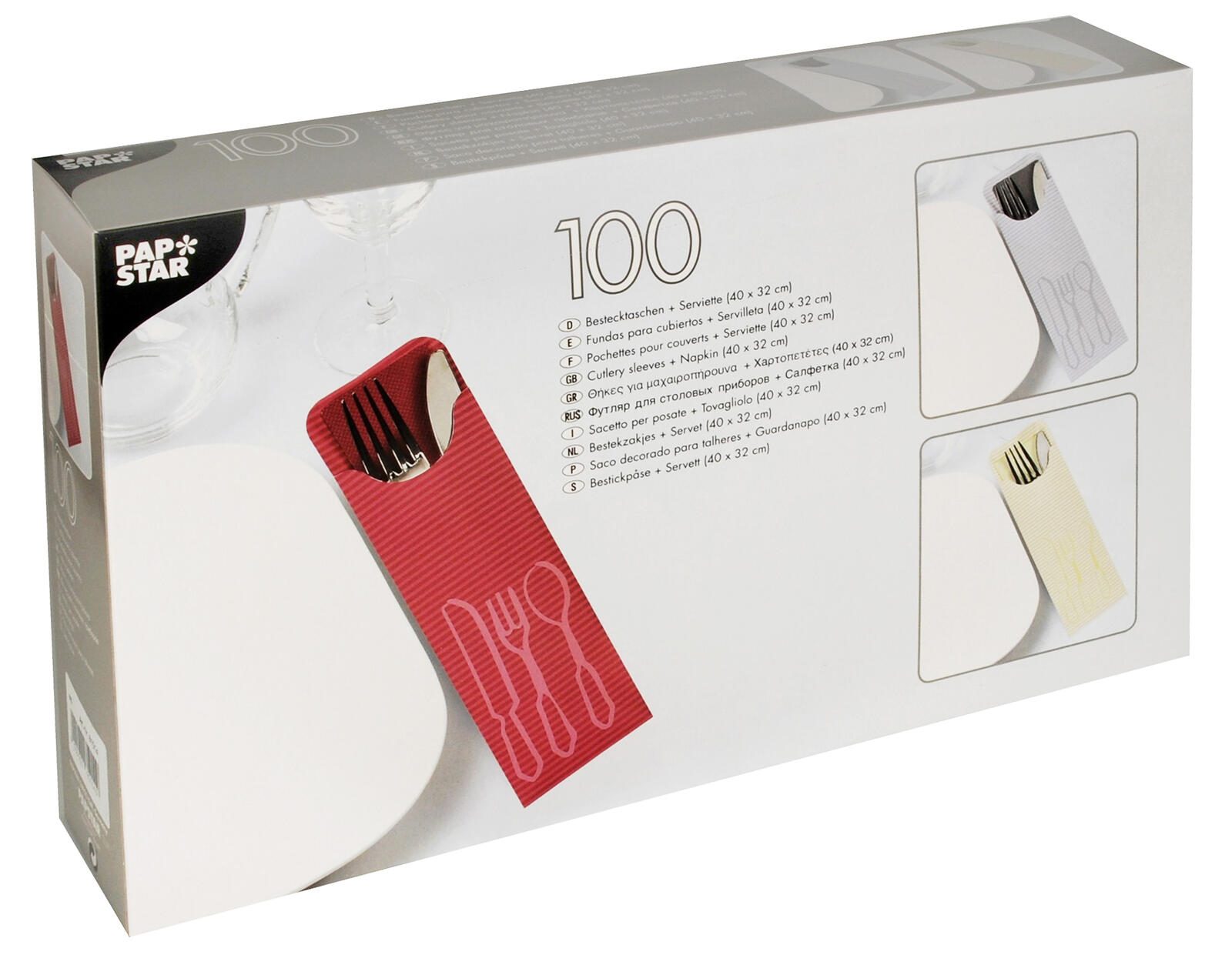 PAPSTAR Bestecktaschen 7,3 x 23,5 cm creme