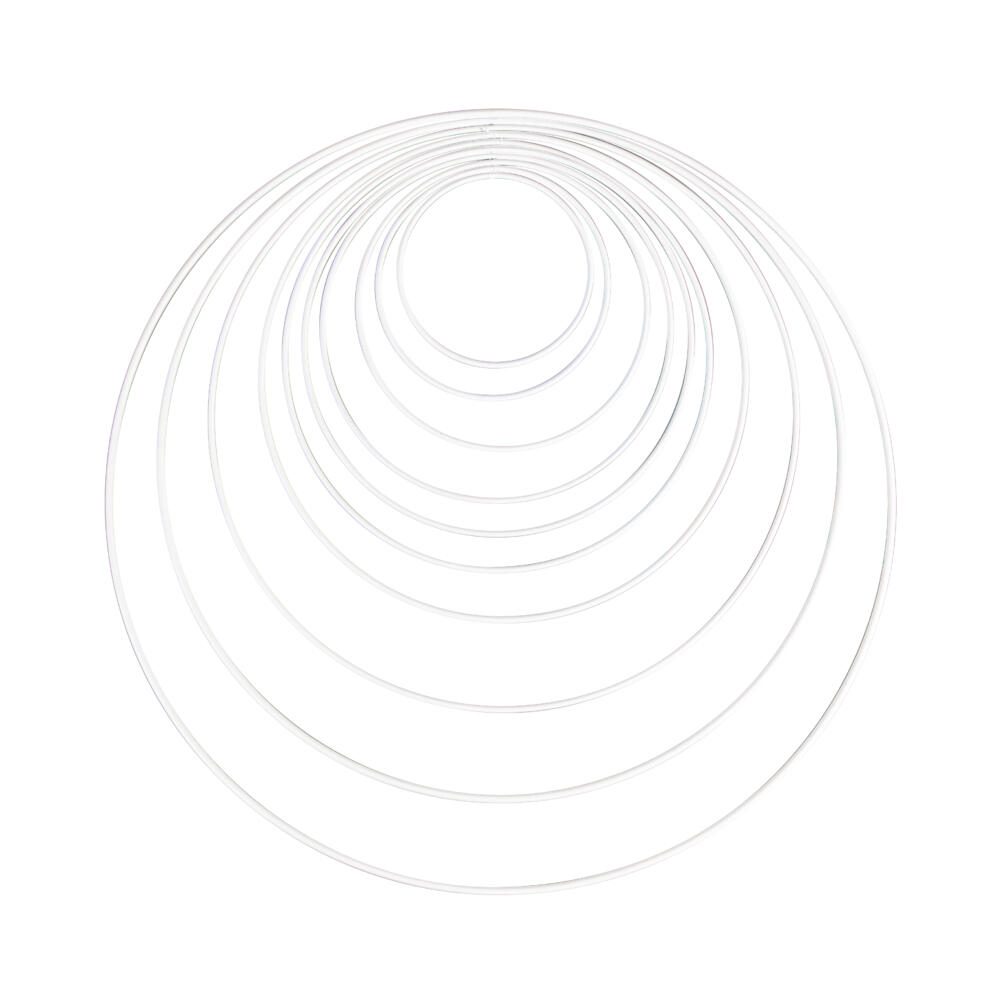 Hergestellt aus robustem, beschichtetem Metall bieten diese Ringe nicht nur eine ansprechende Optik, sondern auch eine ausgezeichnete Langlebigkeit. Die weiße Beschichtung verleiht den Ringen eine moderne Note und macht sie zu einem idealen Material für verschiedene kreative Anwendungen. Dank ihrer neutralen Farbe lassen sie sich mühelos mit anderen Materialien und Farbtönen kombinieren, was Ihre Gestaltungsmöglichkeiten erheblich erweitert.