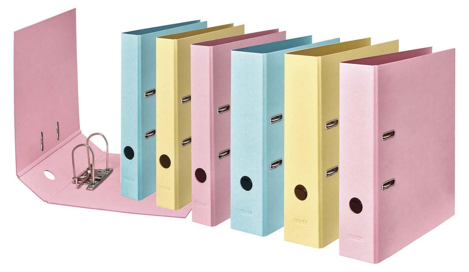 FALKEN Ordner Rückenbreite 5 cm DIN A4 Karton Vanille-Gelb, Flamingo-Pink, Himmel-Blau