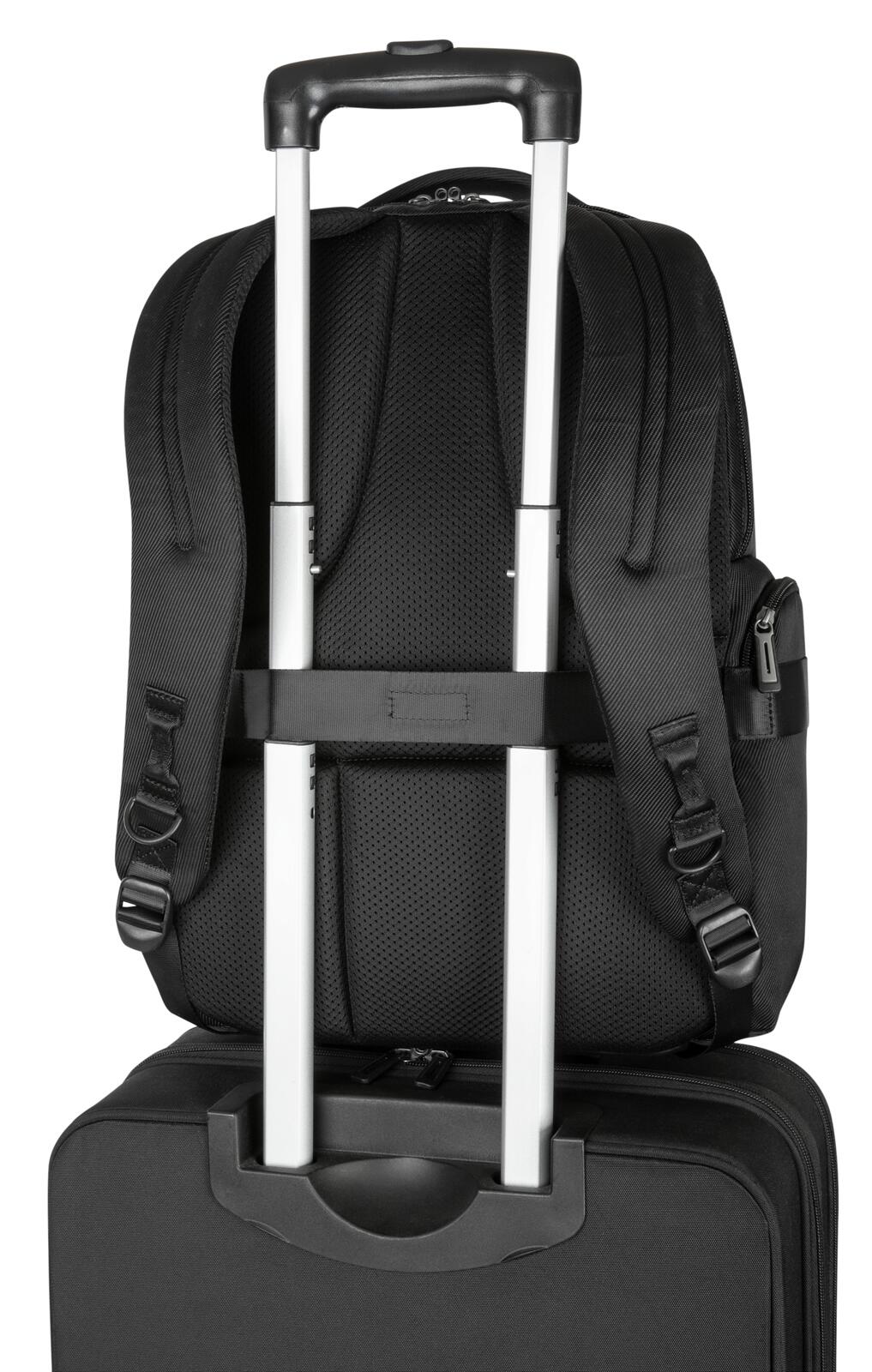 Für maximalen Schutz sichert die SafePort®-Schlaufe Ihr Notebook, falls es herunterfällt, und abschließbare Reißverschlüsse sorgen für mehr Sicherheit, wenn Sie unterwegs sind. Ausgestattet mit einem Griff an der Oberseite, gepolsterten Schulterriemen oder einem Trolley-Gurt zum bequemen Stapeln und Rollen ist dieser Rucksack der optimale Reisebegleiter und lässt sich problemlos im Gepäckfach verstauen.