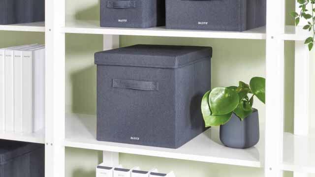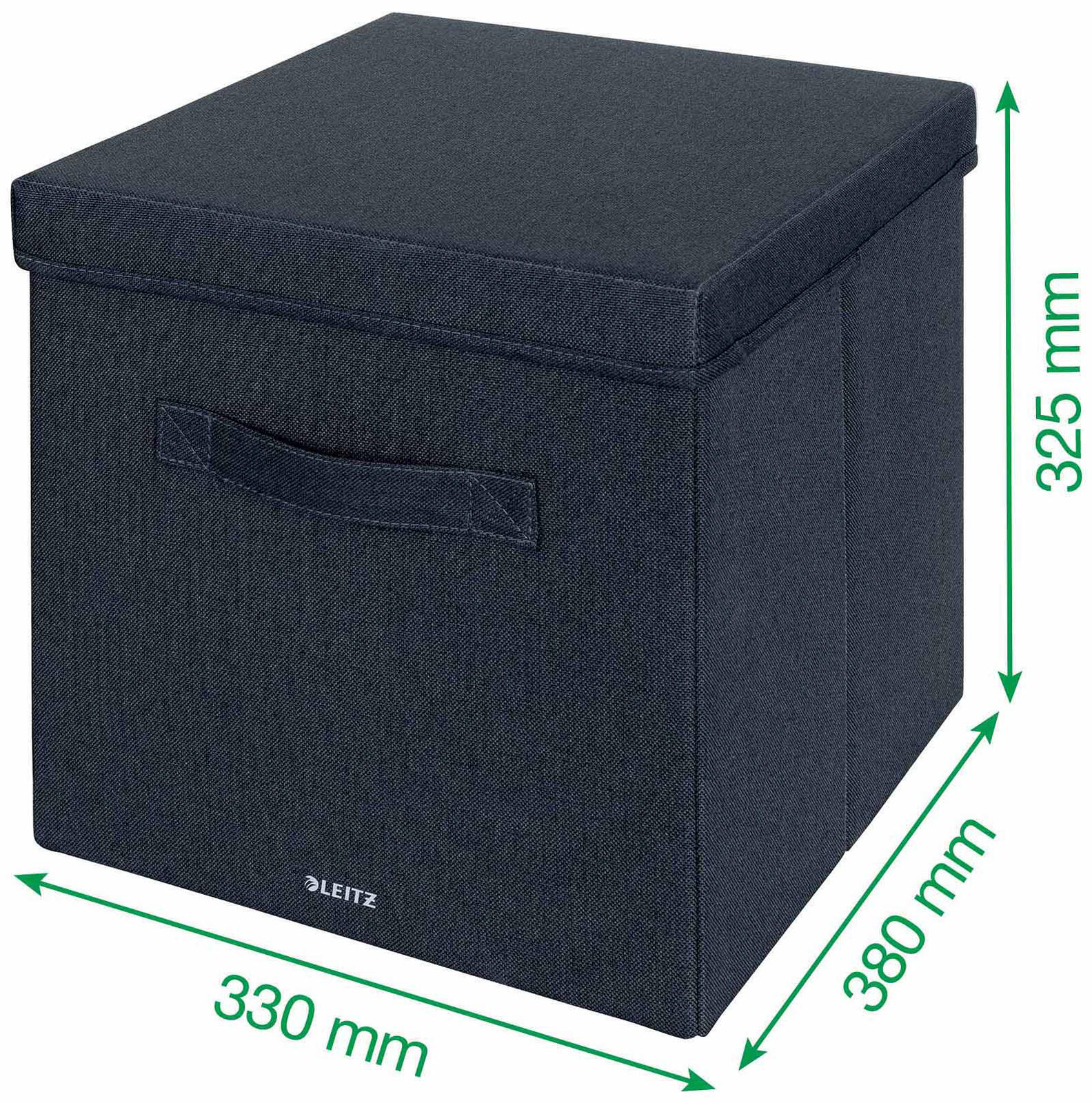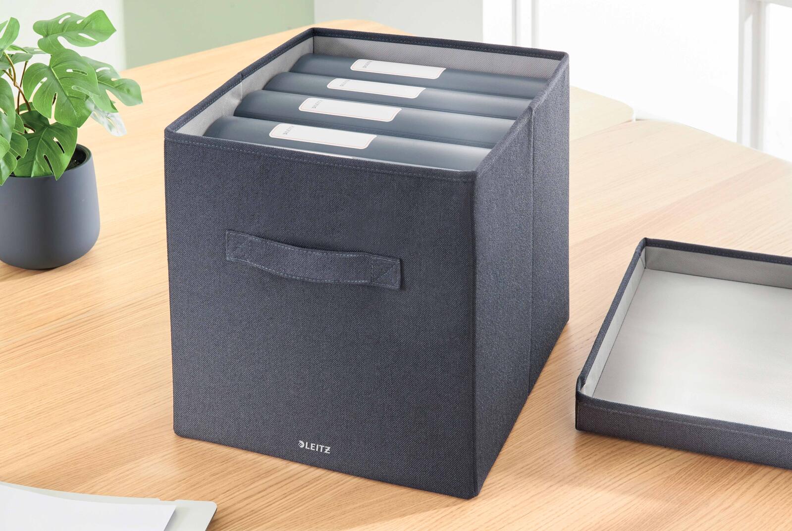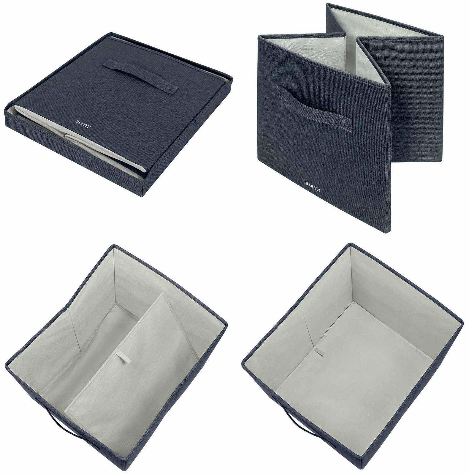 Die 2 LEITZ Aufbewahrungsboxen in elegantem Grau sind die ideale Lösung für eine aufgeräumte und stilvolle Aufbewahrung. Mit Außenmaßen von 33,0 x 38,0 x 32,5 cm bieten diese Boxen ausreichend Platz für größere Gegenstände wie Aktenordner, Kleidung und Papierkram. Die praktische Faltbarkeit der Boxen ermöglicht eine einfache Handhabung und Lagerung, wenn sie nicht in Gebrauch sind. Die Boxen sind mit seitlichen Griffen ausgestattet, die das Tragen und Verschieben erleichtern. Sie sind nicht nur funktional, sondern auch umweltfreundlich, da sie zu 71% recyclebar sind und aus hochwertigem, verstärktem Karton gefertigt werden. Das Material aus Textil verleiht den Boxen eine ansprechende Optik und sorgt gleichzeitig für die nötige Stabilität. Ein weiterer Vorteil dieser Aufbewahrungsboxen ist ihre Kompatibilität mit Standard-Würfelregalen, was bedeutet, dass du sie problemlos in dein bestehendes Möbelkonzept integrieren kannst. Der schlichte graue Farbton fügt sich harmonisch in jede Einrichtung ein und sorgt für eine moderne, aufgeräumte Atmosphäre. Mit dem Kauf erhältst du ein Set aus zwei Boxen, die dir helfen, Ordnung in deinem Zuhause oder Büro zu schaffen. Egal, ob du wichtige Dokumente, saisonale Kleidung oder andere Gegenstände verstauen möchtest, die 2 LEITZ Aufbewahrungsboxen sind die perfekte Wahl für eine stilvolle und praktische Aufbewahrungslösung.Technische Daten
