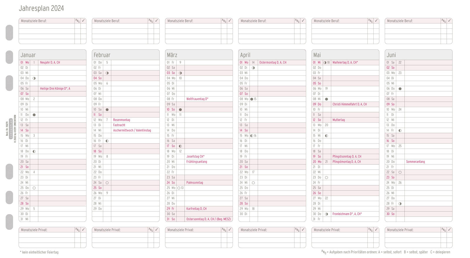CHRONOPLAN Kalendereinlage 2024 A5 Jahresplan