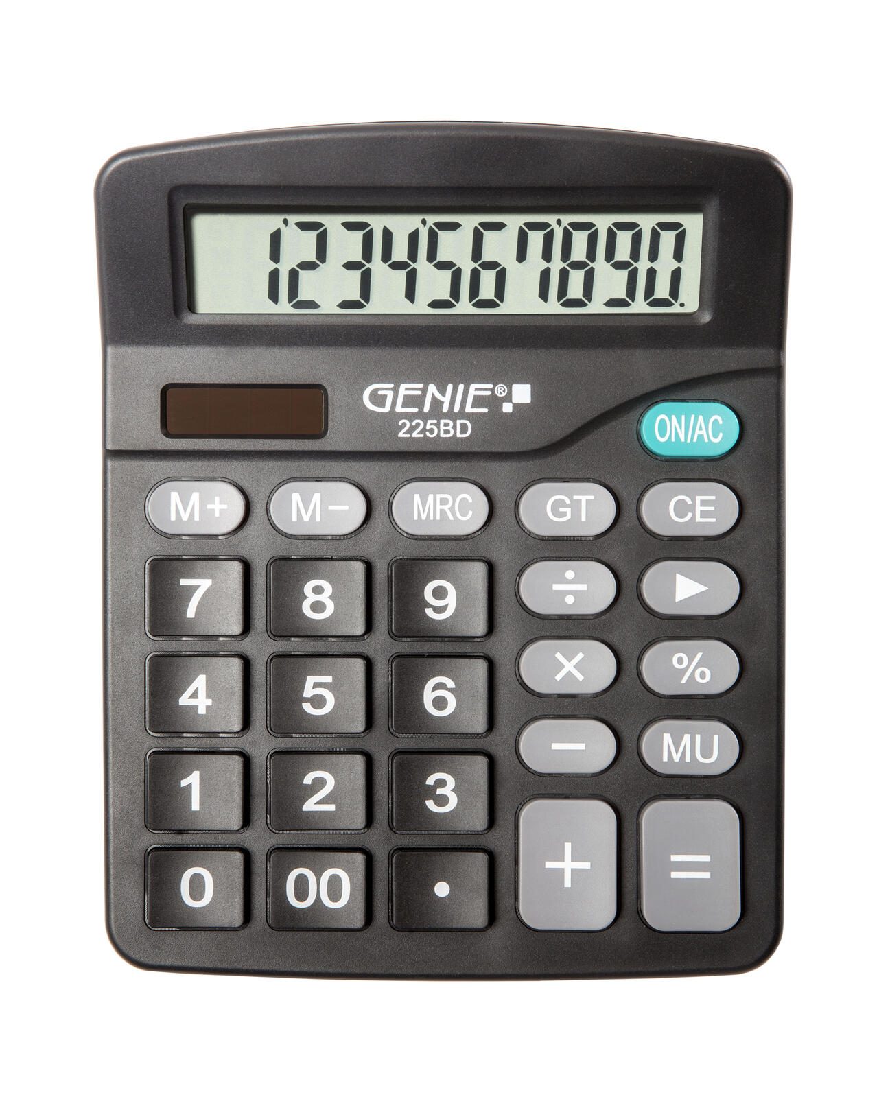 Der GENIE Tischrechner 225 BD in elegantem Schwarz ist die perfekte Lösung für alle, die einen zuverlässigen und funktionalen Taschenrechner benötigen. Mit einer 12-stelligen Anzeige bietet dieser Tischrechner ausreichend Platz für alle Ihre Berechnungen, sei es im Büro, zu Hause oder in der Schule. Die klare und gut lesbare Anzeige sorgt dafür, dass Sie auch bei längeren Rechnungen den Überblick behalten. Dieser Tischrechner zeichnet sich durch seine vielseitige Betriebsart aus. Er kann sowohl mit Batterie als auch solarbetrieben genutzt werden, was ihn besonders umweltfreundlich und praktisch macht. Die Lieferung umfasst bereits eine Knopfzelle LR54, sodass Sie sofort mit Ihren Berechnungen beginnen können. Das ansprechende schwarze Design des GENIE Tischrechners 225 BD verleiht ihm einen modernen Look, der in jede Umgebung passt. Das Gehäuse ist robust und langlebig, was eine lange Lebensdauer garantiert. Dieser Taschenrechner ist nicht nur ein nützliches Werkzeug, sondern auch ein stilvolles Accessoire für Ihren Schreibtisch. Die Kombination aus Funktionalität und ansprechendem Design macht den GENIE Tischrechner 225 BD zu einer ausgezeichneten Wahl für alle, die Wert auf Qualität legen. Egal, ob Sie schnelle Berechnungen durchführen oder komplexe mathematische Probleme lösen möchten, dieser Tischrechner wird Ihren Anforderungen gerecht. Vertrauen Sie auf die bewährte Qualität von GENIE und erleben Sie die Vorteile eines leistungsstarken Tischrechners, der Ihre Arbeit erleichtert und effizient gestaltet.Technische Daten