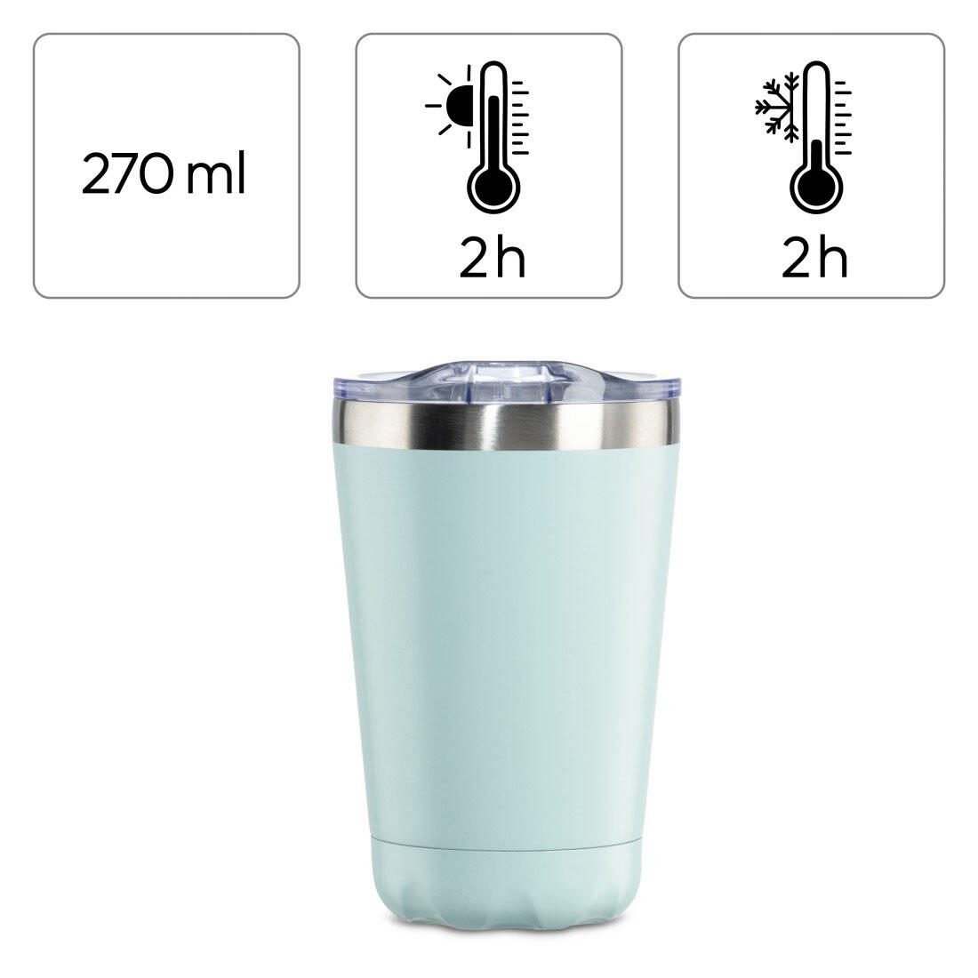 Der xavax® Isolierbecher mit einem Fassungsvermögen von 270 ml in strahlendem Blau vereint Funktionalität mit Stil. Das hochwertige Material aus Edelstahl und Kunststoff gewährleistet eine optimale Isolierung deines Lieblingsgetränks, sei es heißer Kaffee am Morgen oder erfrischender Eistee am Nachmittag. Die handliche Größe macht ihn zum idealen Begleiter für unterwegs, ob auf dem Weg zur Arbeit, beim Sport oder einfach während deiner Freizeitaktivitäten.