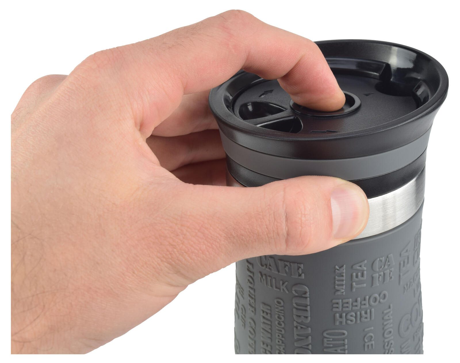 Mit einem unauffälligen, aber stilvollen Grauton passt dieser Isolierbecher zu jeder Gelegenheit. Egal ob im Büro, beim Sport, auf Reisen oder zuhause - er ist ein praktischer und zugleich schicker Alltagsbegleiter.