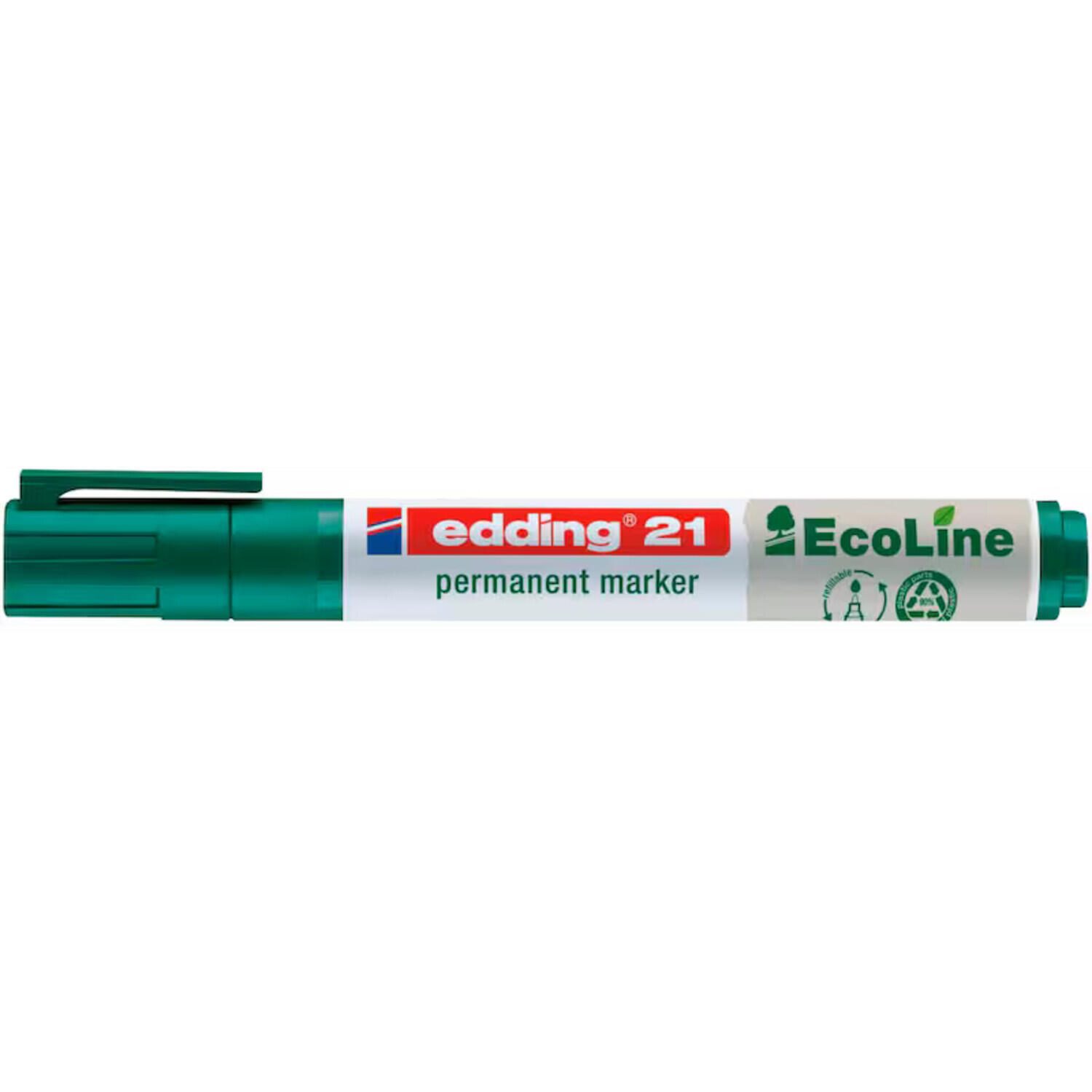 Ein weiterer Vorteil der edding 21 EcoLine Permanentmarker ist ihre Nachfüllbarkeit, was nicht nur umweltfreundlich ist, sondern auch für eine nachhaltige Nutzung sorgt. Mit einem Recyclinginhalt von 90 % wird zudem ein Beitrag zur Reduzierung von Abfall geleistet. Die Marker sind mit einer Kappe versehen und verfügen über einen praktischen Clip, sodass du sie einfach transportieren und überallhin mitnehmen kannst.