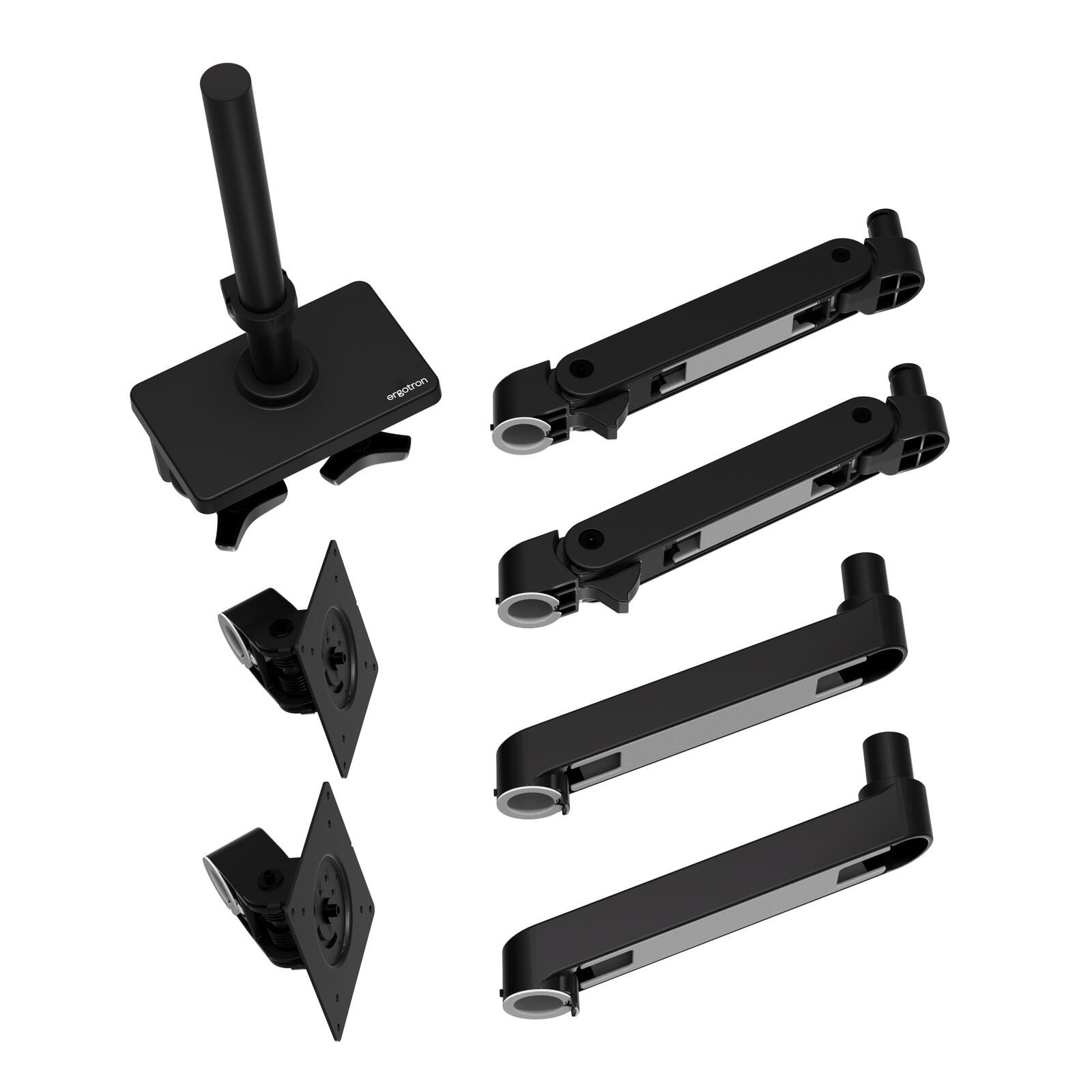 Die Tischmontage ermöglicht eine einfache Integration in Ihr Arbeitsumfeld, während die VESA-Halterungen mit den Maßen 100 x 100 mm und 75 x 75 mm eine breite Kompatibilität gewährleisten. Der Doppelarm des Kits sorgt dafür, dass Sie Ihre Displays in verschiedenen Positionen anordnen können, um den optimalen Betrachtungswinkel zu erreichen.