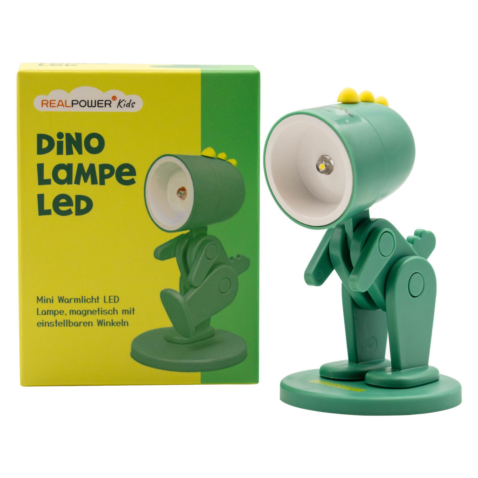 RealPower LED-Tier Taschenlampe Grüner Dino mit Sockel Mini-Warmlicht LED-Lampe mit einstellbaren Winkeln