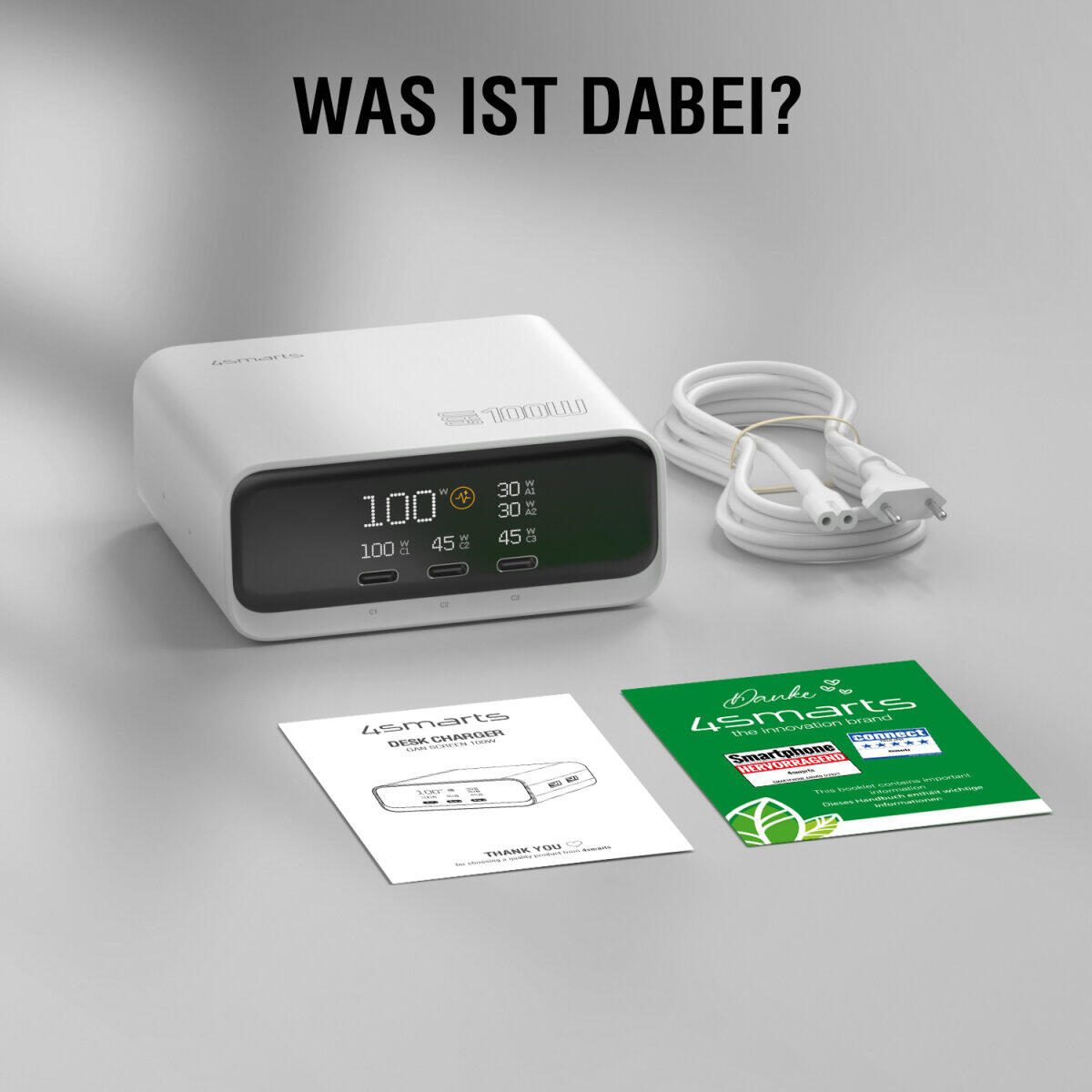 4smarts Desk Charger GaN Screen 100W 3C+2A weiß