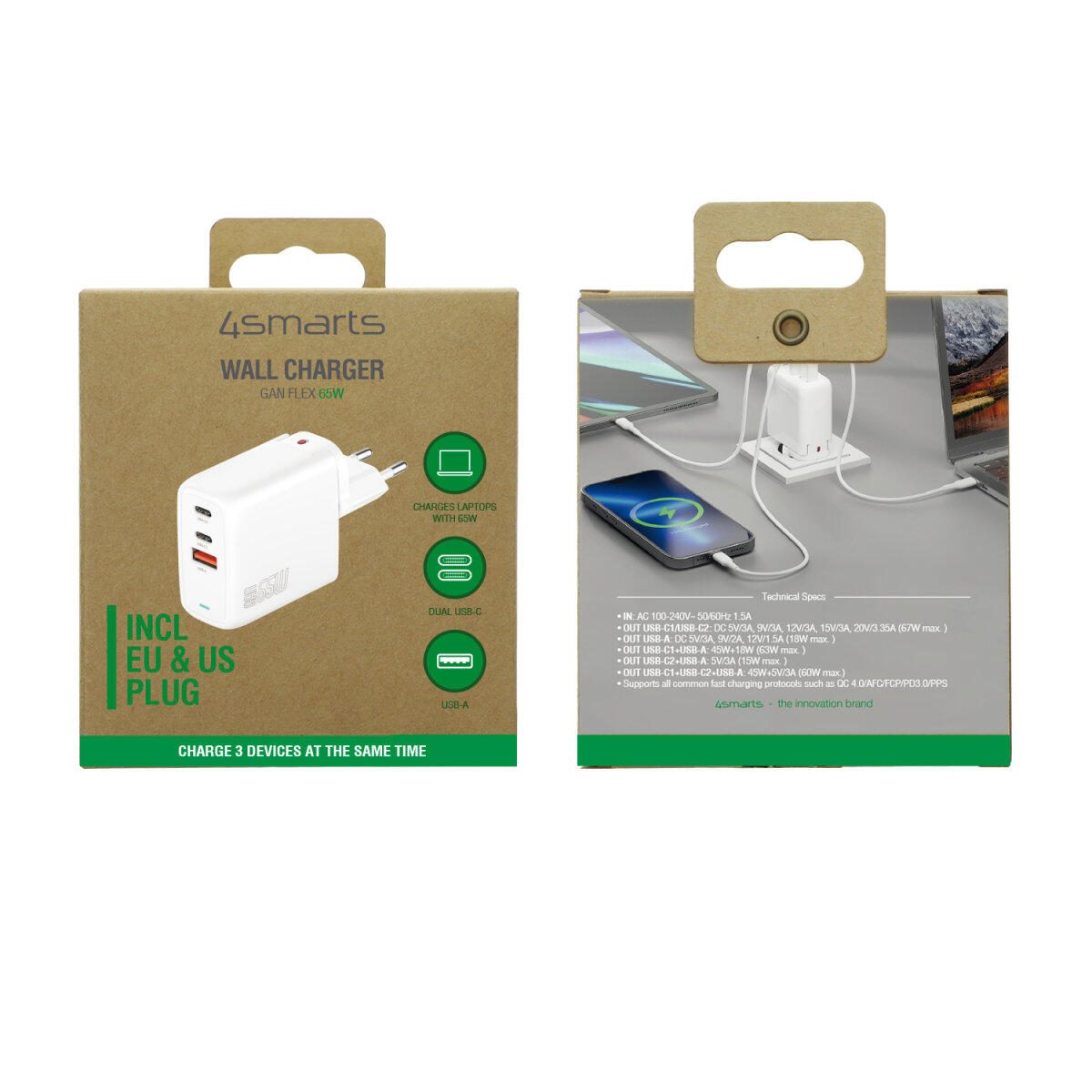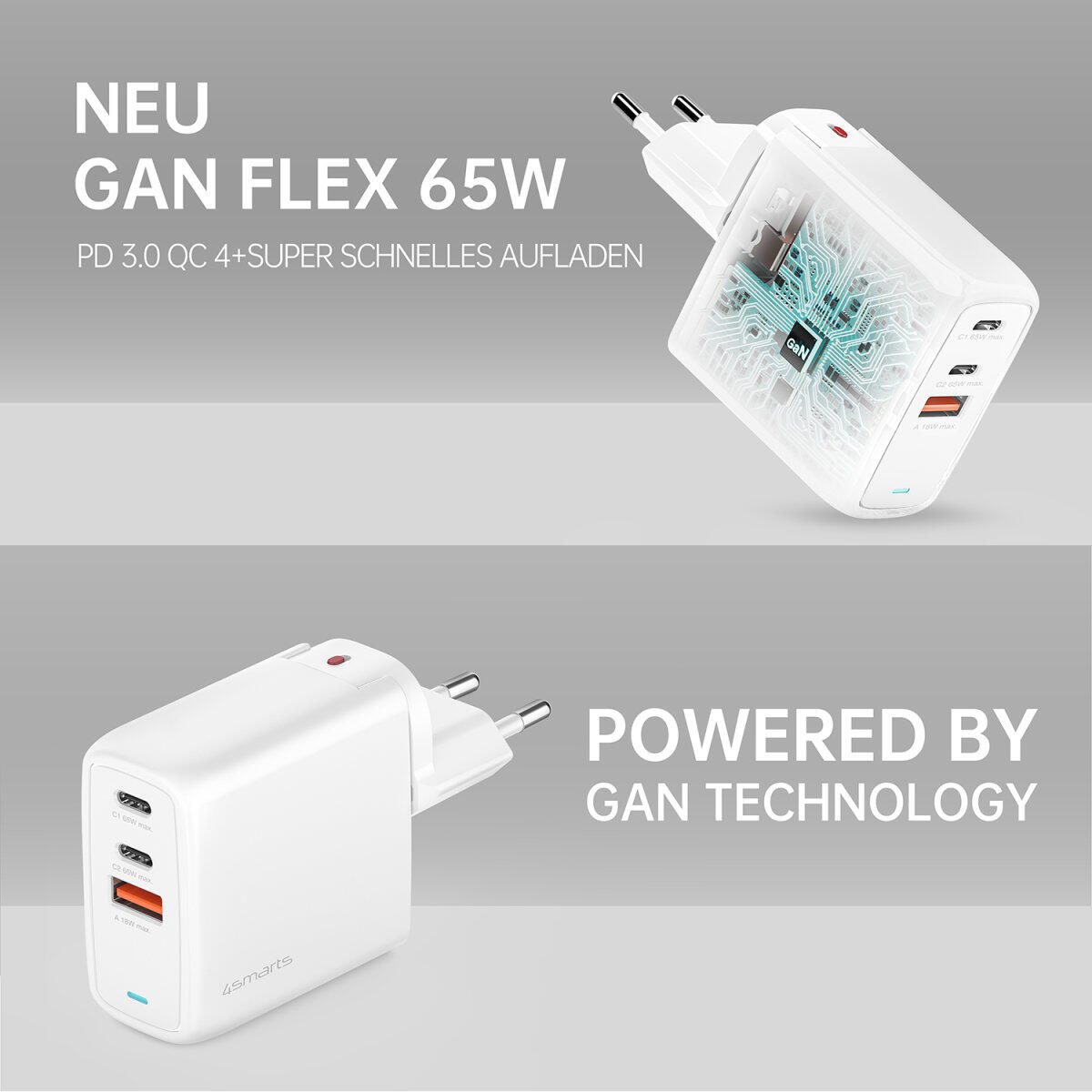 4smarts Ladegerät GaN Flex 65W 2 USB-C+1 USB-A weiß