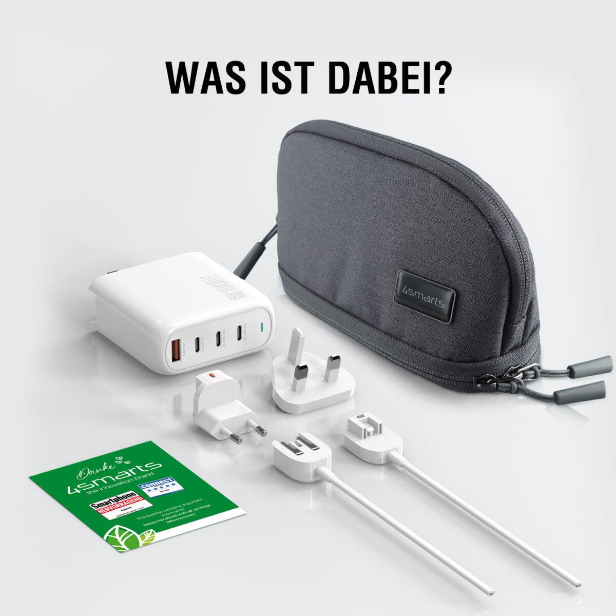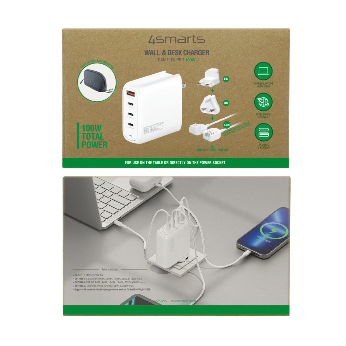 4smarts Ladegerät GaN Flex Pro 100W 3 USB-C+1 USB-A, weiß, Travel Edition