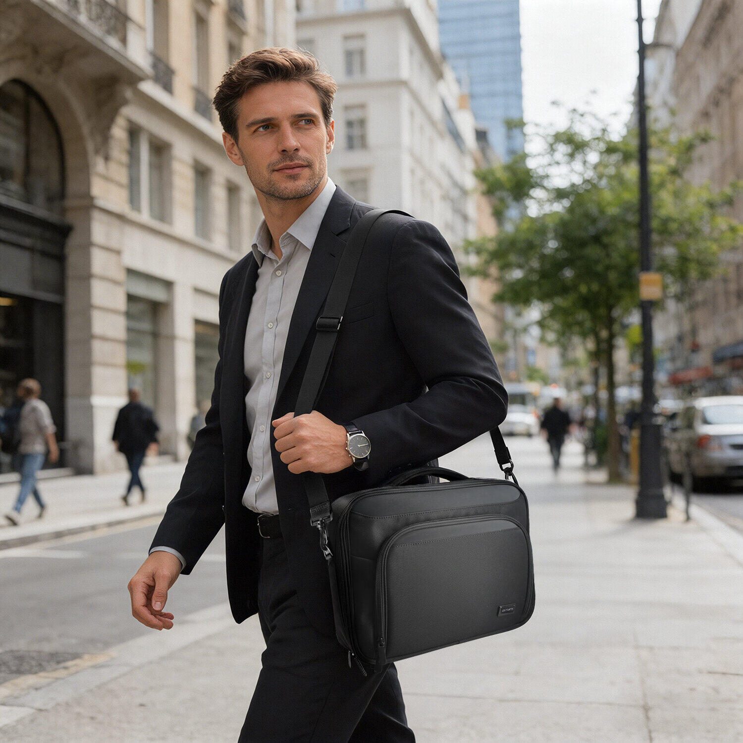 Im Inneren sorgt die gepolsterte Innentasche mit verschließbarem Sicherheitsriemen dafür, dass dein Notebook sicher fixiert bleibt. Die weiche Oberfläche schützt vor Kratzern, während die feste Position ein Verrutschen verhindert. Der verstärkte Griff ist mit weichem Neopren umhüllt und bietet hohen Tragekomfort sowie zusätzliche Stabilität. Perfekt für den täglichen Einsatz und längere Wege.
