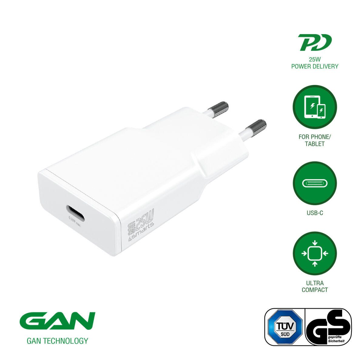 4smarts Netzladegerät PDPlug Slim 25W GaN 1C weiß