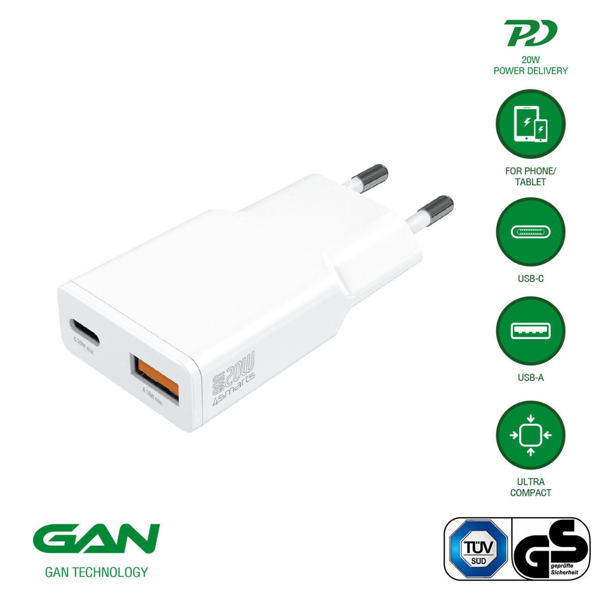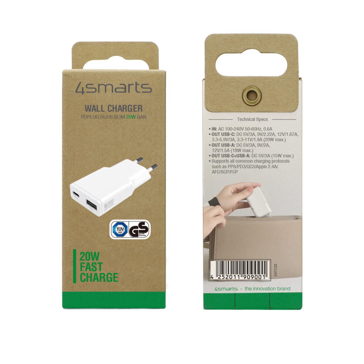 4smarts Netzladegerät PDPlug Slim Duos 20W GaN 1C+1A