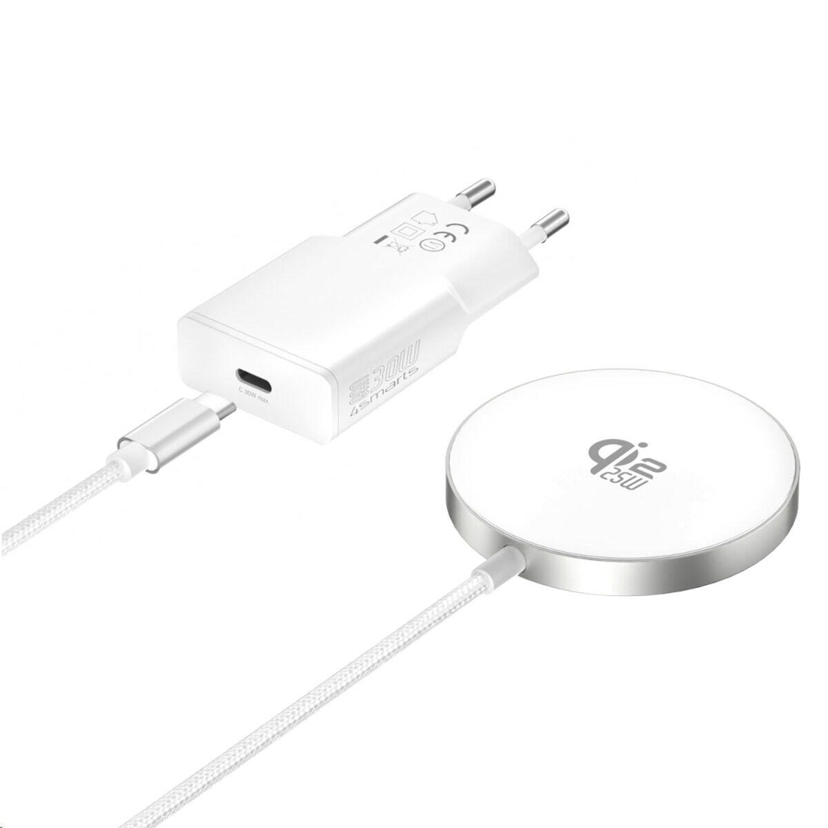 4smarts Qi2 25W MagSafe Kabelloses Ladegerät Set – 1,5 m, Weiß