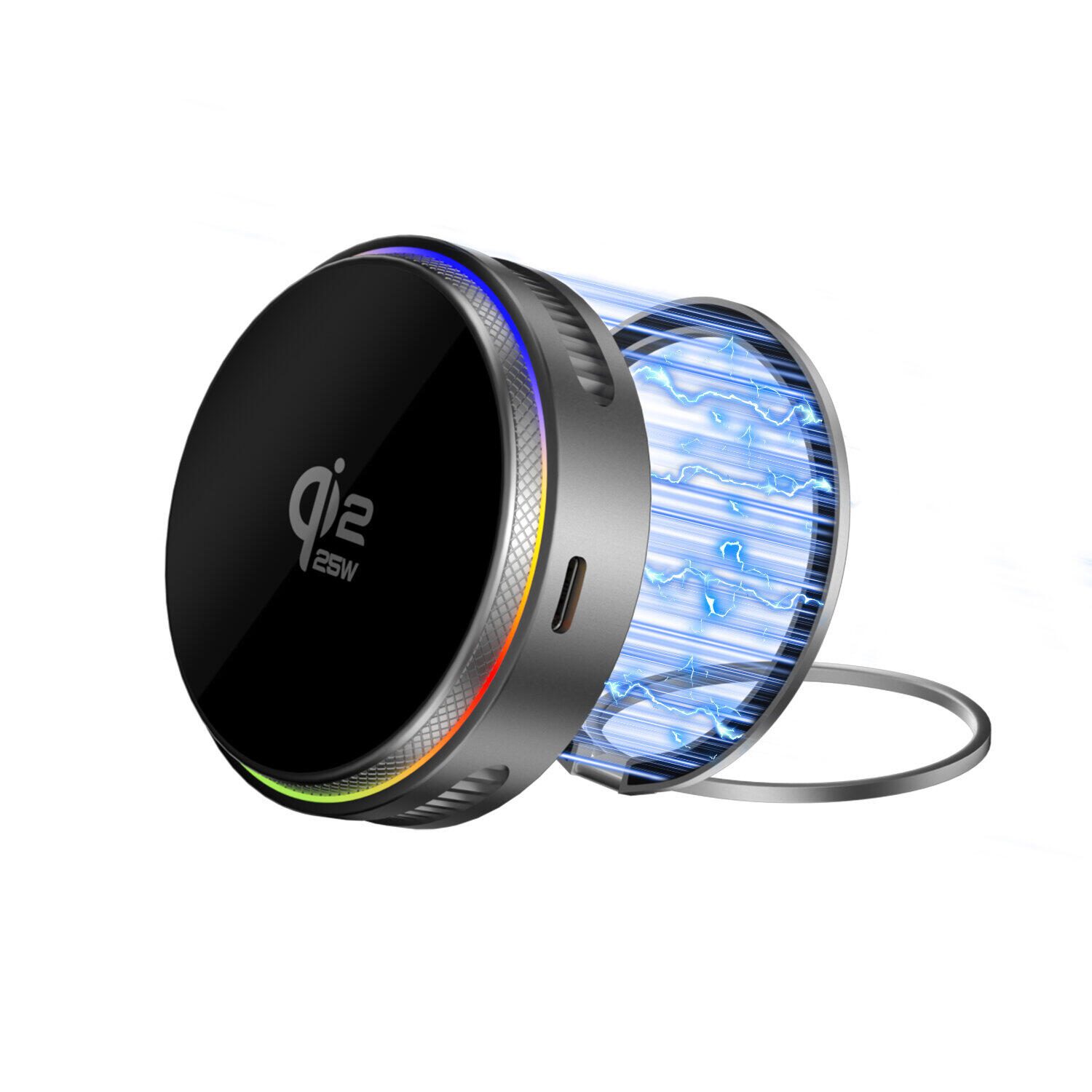 4smarts Qi2 25W / MagSafe Ladegerät-Set mit Kühlung, RGB, spacegrau