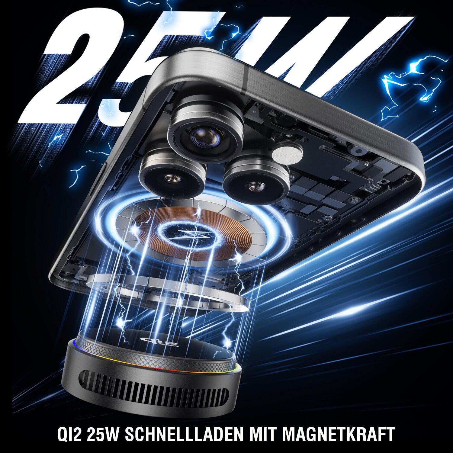 - Qi2 25W Schnellladen: Magnetisches High-Speed-Charging mit präziser Ausrichtung für maximale Ladeleistung