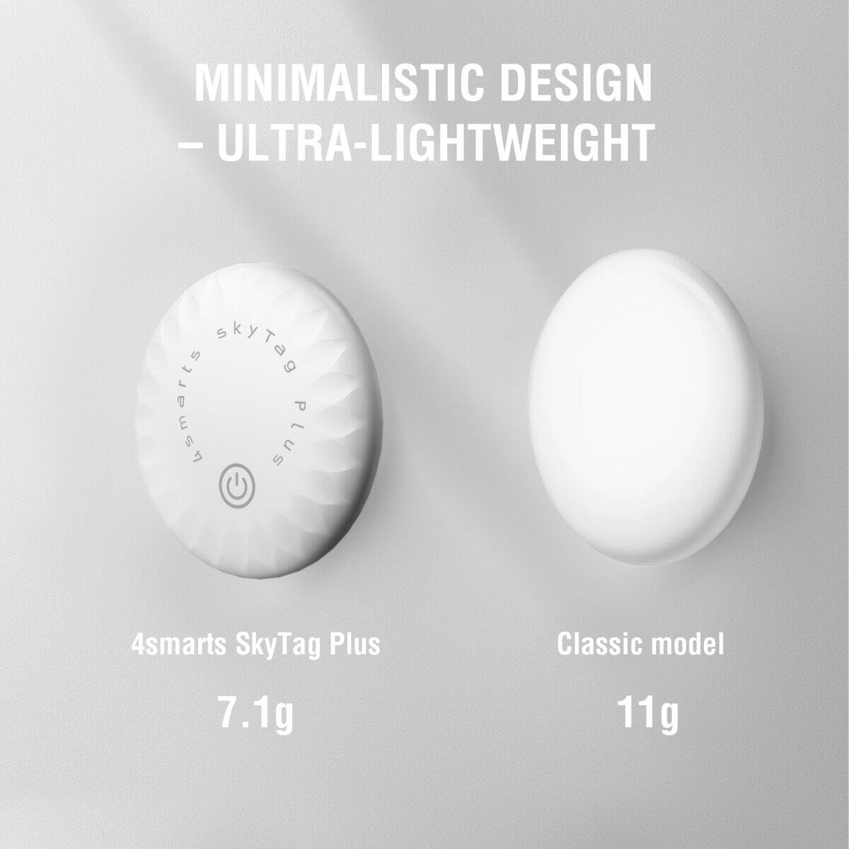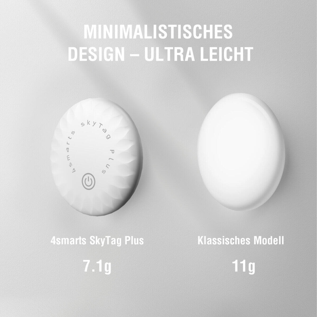 Der SkyTag Plus verbindet Funktionalität mit einem modernen Look. Er hat die gleiche Größe wie der Apple AirTag, besticht jedoch mit einem stilvollen Design. Mit nur 7,1 g Gewicht ist er leicht und kompakt genug, um unauffällig in jeder Tasche, Geldbörse oder an deinem Gepäck Platz zu finden. Trotz seiner schlanken Bauweise bietet er maximale Leistung, ohne aufzufallen oder zu stören. Dieses minimalistische Design macht den SkyTag Plus zu einem Begleiter, der sich perfekt in deinen Alltag integriert.