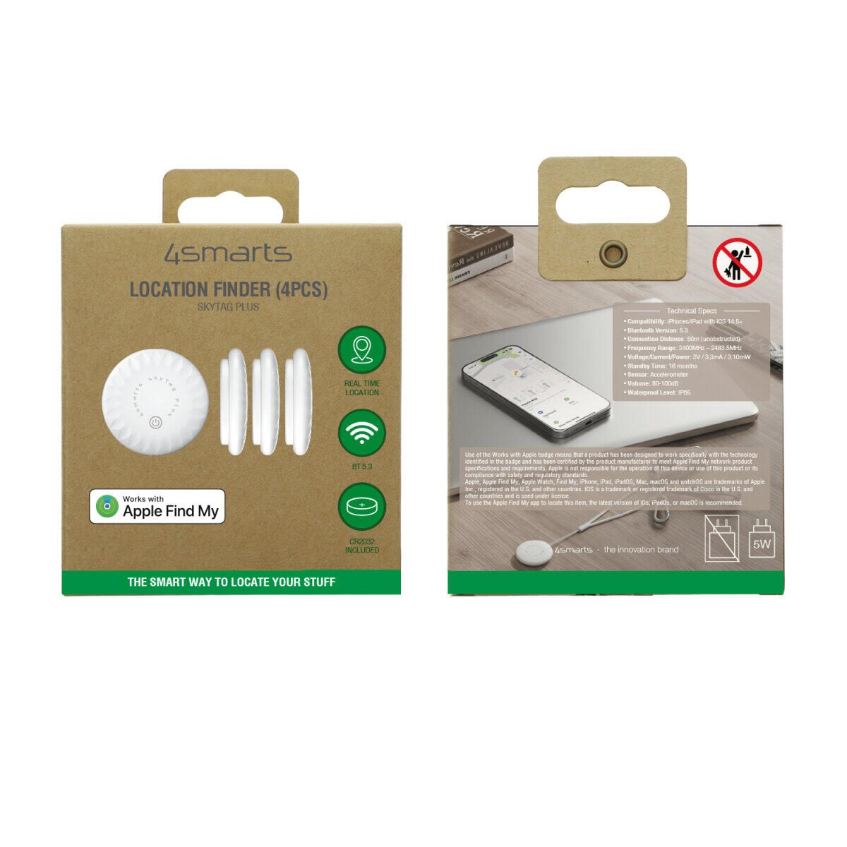 4smarts Standort-Finder SkyTag Plus 4er Set, weiß Kompatibel zu Apples "Wo ist?"-App, IP65 zertifiziert