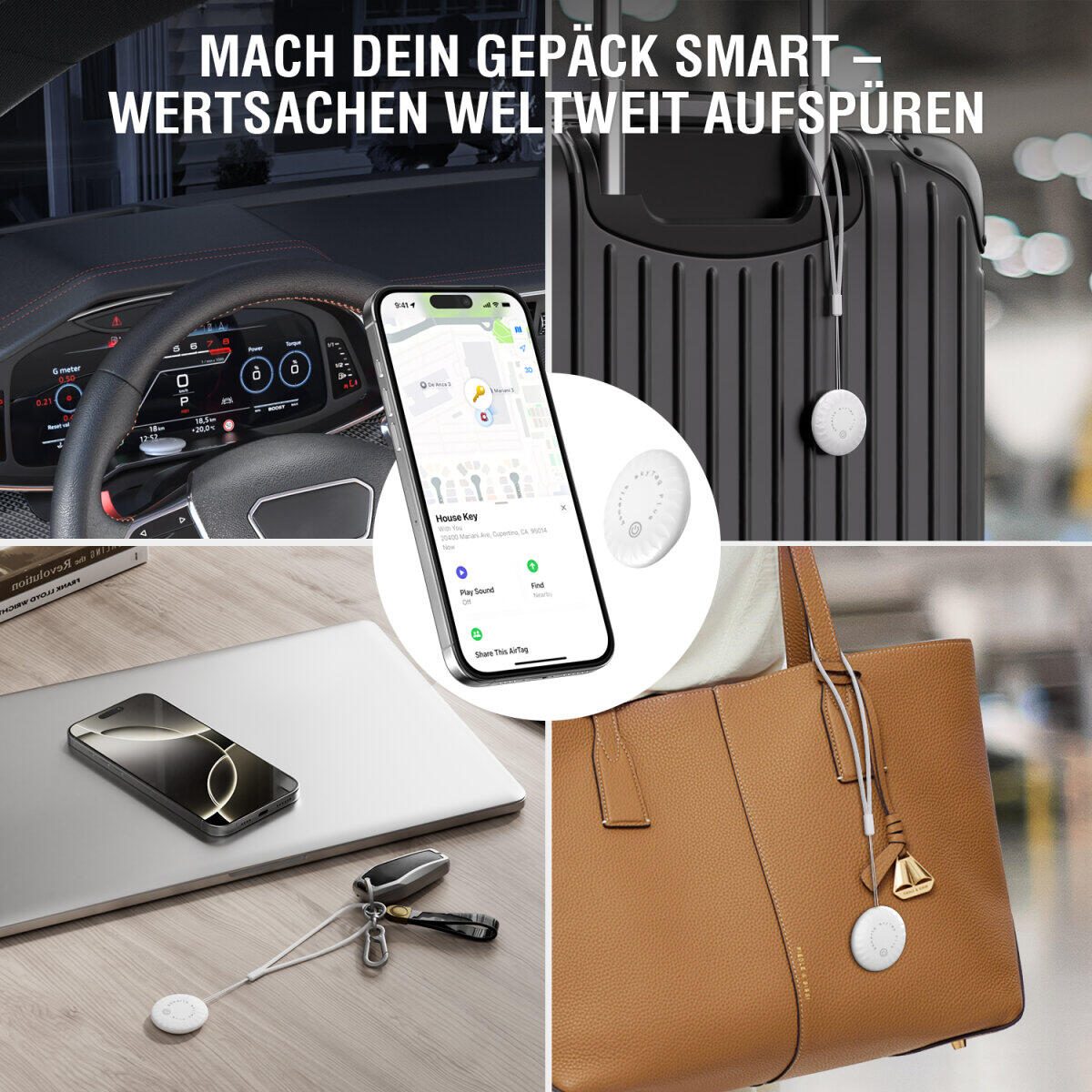Kompatibel zu Apples "Wo ist?"-App, IP65 zertifiziert