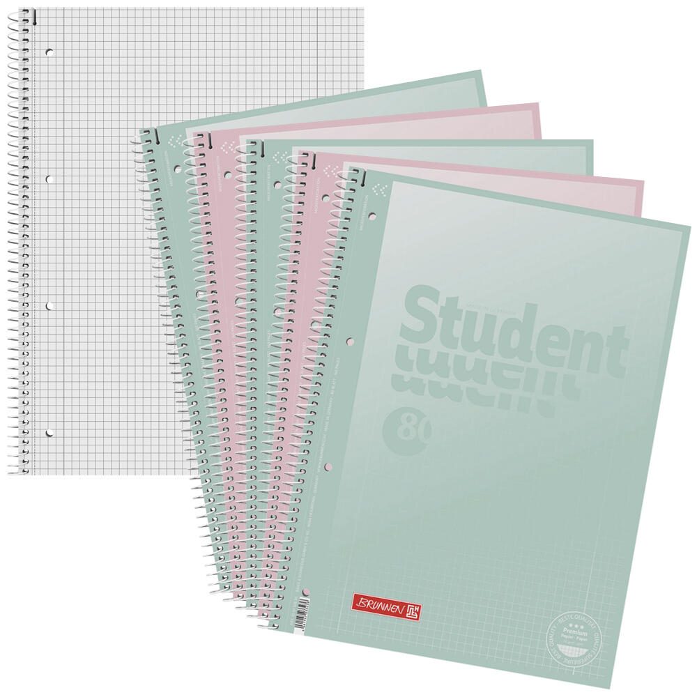 BRUNNEN Collegeblöcke 5Collegeblöcke A4Pastell LIN28 kariert DIN A4