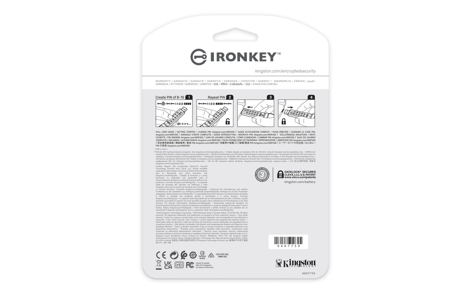 Der KP200 verfügt über eine XTS-AES 256-Bit-Hardware-Verschlüsselung. Außerdem ist er nach FIPS 140-3 Level 3 (ausstehend) für die militärische Sicherheit zertifiziert und verfügt über Verbesserungen, die die Messlatte für den Datenschutz noch höher legen. Die Schaltkreise sind mit einer speziellen Epoxidschicht überzogen, die es praktisch unmöglich macht, die Komponenten zu entfernen, ohne sie zu beschädigen; so verhindert dieses widerstandsfähige Epoxid Angriffe auf die Halbleiterkomponenten. Der USB-Stick ist so konstruiert, dass er den Besitzer vor Manipulationen warnt. Außerdem bietet er Schutz vor Brute-Force-Passwortangriffen und BadUSB-Schutz mit digital signierter Firmware. Die alphanumerische Tastatur ist mit einer Polymerschicht überzogen, die die Tasten schützt und die Benutzung der Tasten durch die Analyse der Fingerabdrücke auf den Tasten verbirgt.