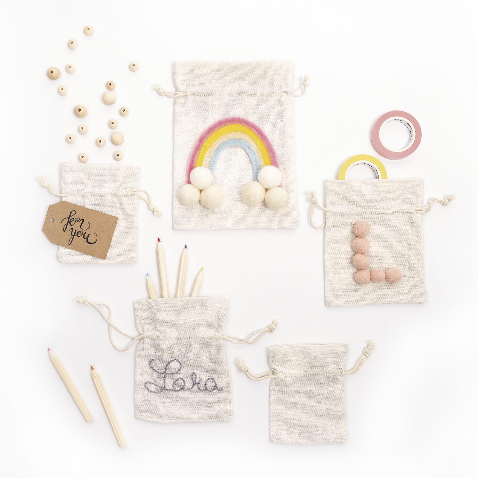 Die Maße von 8,0/10,0/13,0 x 10,0/130,/18,0 cm bieten ausreichend Platz für deine persönlichen Botschaften, Namen oder Glückwünsche. Mit den sechs naturfarbenen Stoffsäckchen von folia erhältst du eine praktische und ansprechende Verpackung für deine Geschenkanhänger.
