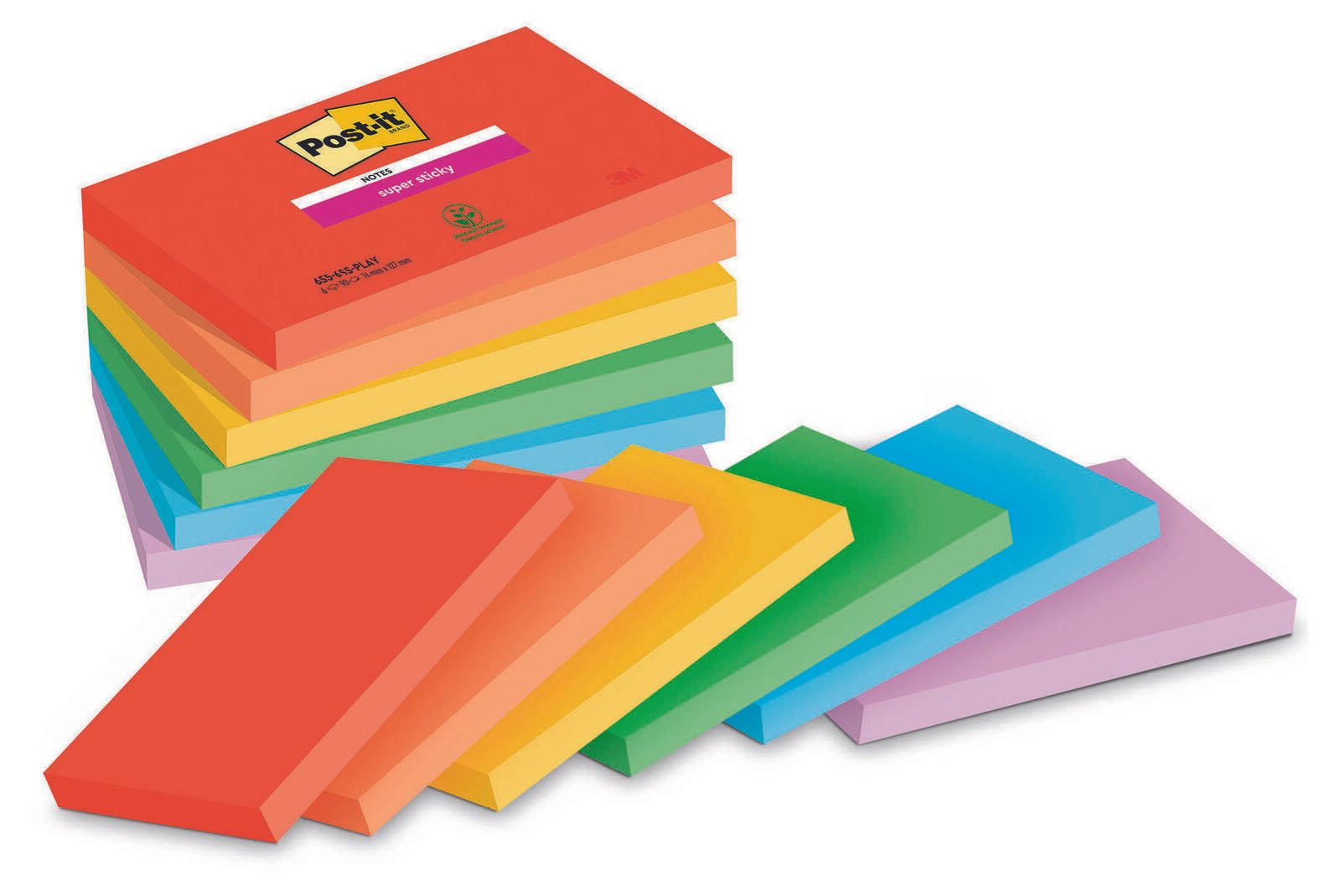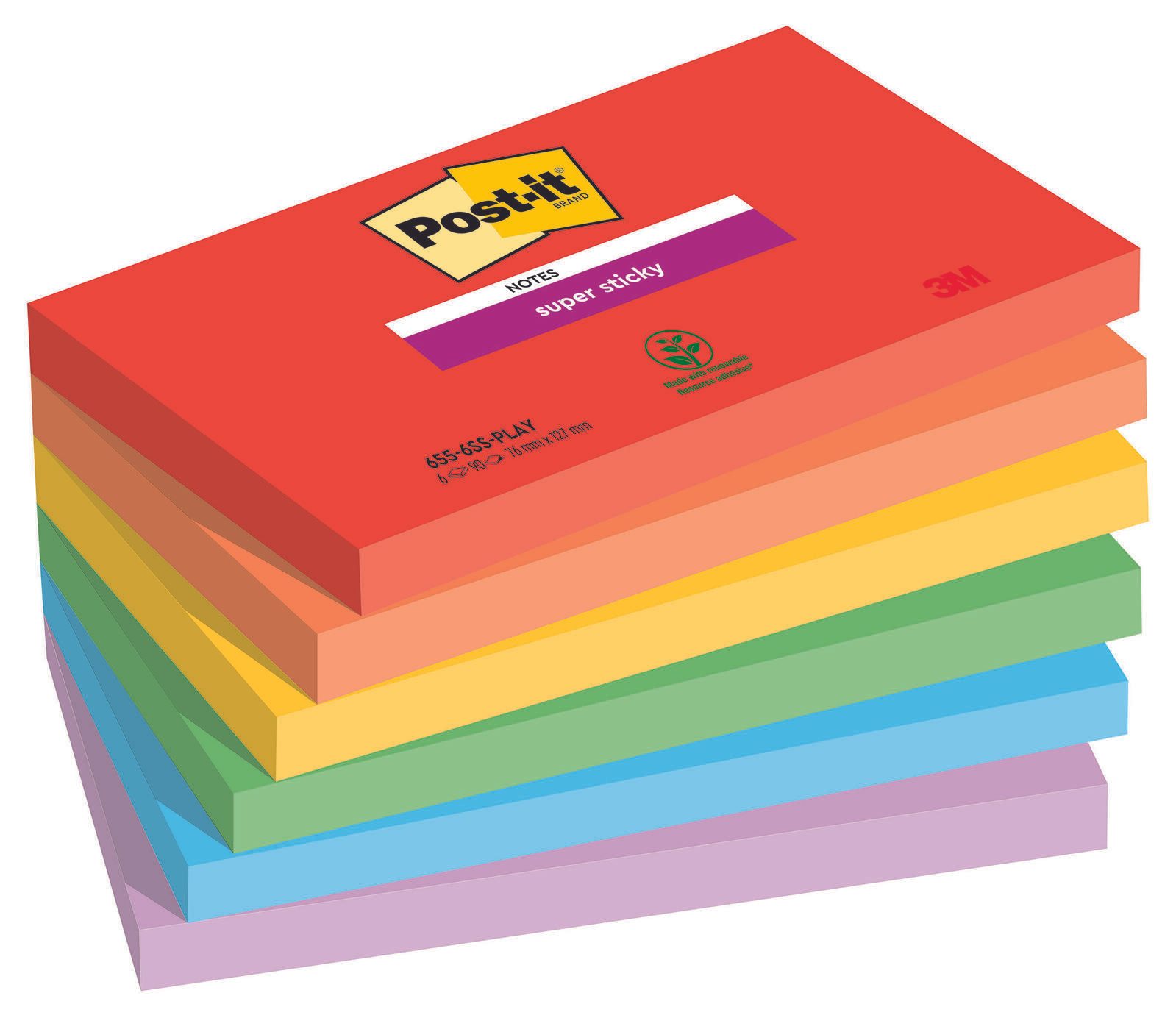 Die Post-it® Playful Haftnotizen sind die perfekte Lösung für alle, die ihre Gedanken und Ideen festhalten möchten. Mit einer Größe von 12,7 x 7,6 cm bieten sie ausreichend Platz, um wichtige Informationen zu notieren oder kreative Gedanken festzuhalten. Diese farbenfrohen Haftnotizen kommen in einer praktischen Blockausführung und sind in einer Vielzahl lebendiger Farben erhältlich, darunter ultrarot, vitalorange, ultragelb, limonengrün, paradiseblau und flieder. Die Haftnotizen bestehen aus hochwertigem Papier und verfügen über eine extrastarke Haftung, die sicherstellt, dass deine Notizen dort bleiben, wo du sie platzierst. Mit 90 Blatt pro Block hast du genügend Platz, um deine Ideen zu organisieren, Erinnerungen zu setzen oder sogar kleine Kunstwerke zu schaffen. Die bunte Farbvielfalt sorgt dafür, dass du deine Notizen nicht nur praktisch, sondern auch ansprechend gestalten kannst. Dank ihrer selbstklebenden Eigenschaft lassen sich die Post-it® Playful Haftnotizen mühelos anbringen und wieder abziehen, ohne Rückstände zu hinterlassen. Dies macht sie ideal für den Einsatz im Büro, zu Hause oder in der Schule. Ob für schnelle Notizen, zur Organisation von Aufgaben oder einfach nur zum Verschenken von kreativen Botschaften – diese Haftnotizen sind vielseitig einsetzbar und bringen Farbe in deinen Alltag. Mit einem Pack bestehend aus sechs Blöcken bist du bestens ausgestattet, um deine Ideen festzuhalten und deinen Arbeitsplatz lebendig zu gestalten. Die Post-it® Playful Haftnotizen sind nicht nur funktional, sondern auch ein echter Blickfang, der Freude beim Schreiben und Organisieren bringt.Technische Daten