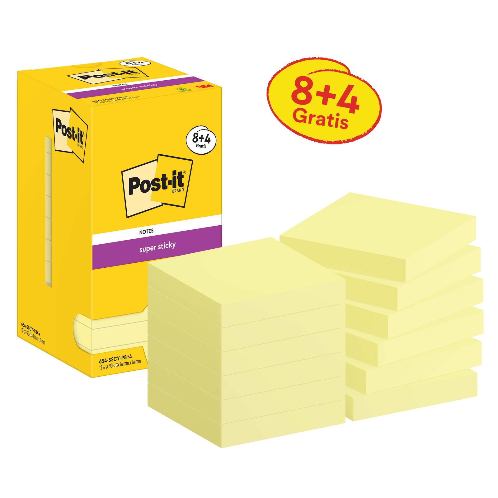 Post-it® Super Sticky Haftnotizen extrastark gelb 8 Blöcke + GRATIS 4 Blöcke