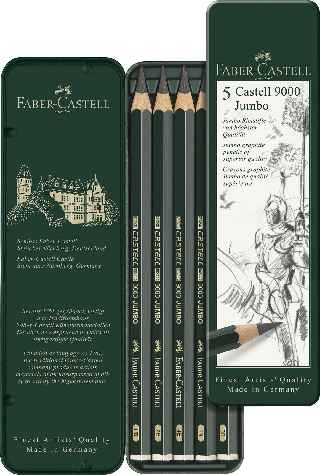 Die FABER-CASTELL Bleistifte bieten dir eine hervorragende Kombination aus Qualität und Benutzerfreundlichkeit. Mit ihrem markanten grünen Schaft sind diese Jumbo-Bleistifte nicht nur ein echter Blickfang, sondern auch extrem funktional. Sie sind sowohl für Rechts- als auch für Linkshänder geeignet, was sie zu einer idealen Wahl für alle macht, die Wert auf Komfort und Ergonomie legen. Die Bleistifte sind mit einer Grafitmine ausgestattet, die eine extrem hohe Bruchsicherheit bietet. Dies bedeutet, dass du dir keine Sorgen um häufiges Abbrechen der Mine machen musst, selbst wenn du beim Zeichnen oder Schreiben etwas fester aufdrückst. Diese langlebige Mine sorgt dafür, dass du länger ungestört arbeiten kannst, ohne ständig nach einem Anspitzer greifen zu müssen. Jede Packung enthält fünf Bleistifte, die dir genügend Material bieten, um deine kreativen Ideen zu verwirklichen oder deine Notizen zu erstellen. Die Jumbo-Ausführung ermöglicht zudem ein angenehmes Halten, was besonders bei längeren Schreib- oder Zeichensitzungen von Vorteil ist. Die FABER-CASTELL Bleistifte sind nicht nur für Schüler und Studenten geeignet, sondern auch für Künstler und Hobbyisten, die Wert auf hochwertige Schreib- und Zeichenwerkzeuge legen. Mit diesen Bleistiften kannst du deine Gedanken und Ideen mühelos zu Papier bringen und dabei die hohe Qualität und Zuverlässigkeit von FABER-CASTELL genießen.Technische Daten