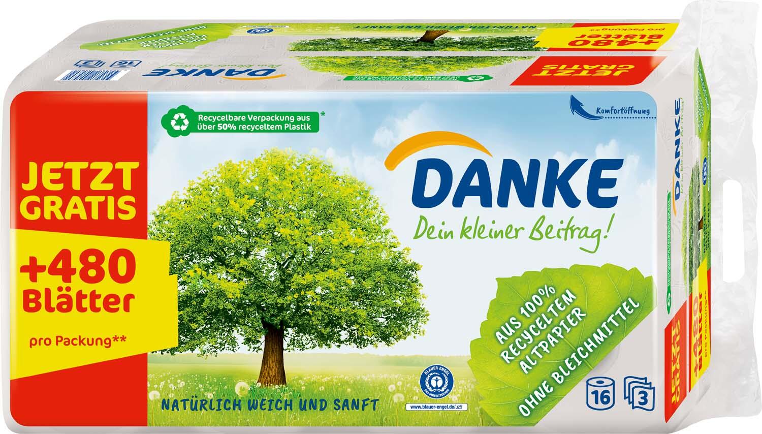 Das DANKE Toilettenpapier 3-lagig bietet dir ein unvergleichliches Gefühl von Komfort und Sauberkeit. Mit seiner hochwertigen 3-lagigen Struktur sorgt es für optimale Saugfähigkeit und ein sanftes Hautgefühl. Jedes Blatt ist perforiert und lässt sich mühelos abreißen, sodass du immer die richtige Menge zur Hand hast. Die Kleinrollen sind perfekt für den täglichen Gebrauch und bieten mit 180 Blättern pro Rolle ausreichend Vorrat. Das Aktionspack enthält insgesamt 16 Rollen, sodass du lange Freude an diesem hochwertigen Toilettenpapier hast. Die naturweiße Farbe verleiht dem Produkt eine ansprechende Optik, die sich harmonisch in jedes Badezimmer einfügt. Ein weiterer Vorteil des DANKE Toilettenpapiers ist, dass es aus Recyclingpapier hergestellt wird. Dies macht es zu einer umweltfreundlichen Wahl, die nicht nur deinem Komfort dient, sondern auch einen Beitrag zum Schutz unserer Umwelt leistet. Die Papierqualität ist sehr gut, was bedeutet, dass du dich auf eine zuverlässige und angenehme Nutzung verlassen kannst. Der Hersteller DANKE steht für Qualität und Nachhaltigkeit, was sich in jedem Detail dieses Toilettenpapiers widerspiegelt. Mit dem DANKE Toilettenpapier 3-lagig entscheidest du dich für ein Produkt, das sowohl deinen Ansprüchen an Hygiene als auch deinen Werten in Bezug auf Umweltschutz gerecht wird. Erlebe den Unterschied, den hochwertiges Toilettenpapier in deinem Alltag machen kann.Technische Daten