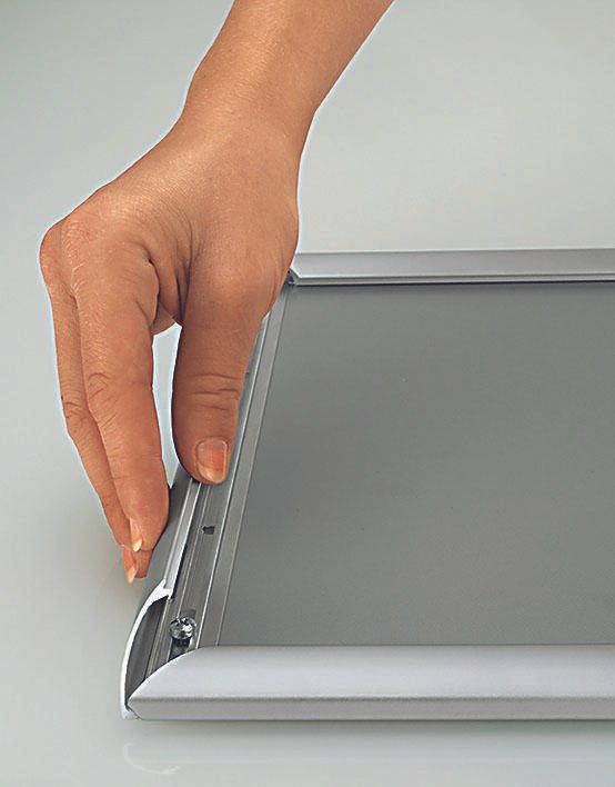Der Klapprahmen eignet sich für Hoch- und Querformate, was dir vielseitige Montagemöglichkeiten bietet. Die Sichtscheibe ist aus robustem Kunststoff gefertigt, während der Rahmen selbst aus hochwertigem Aluminium besteht, was für Langlebigkeit und Stabilität sorgt.