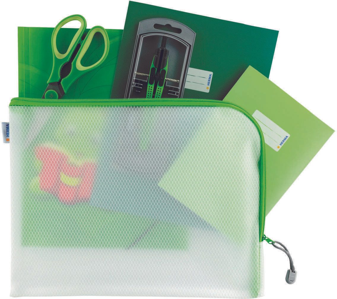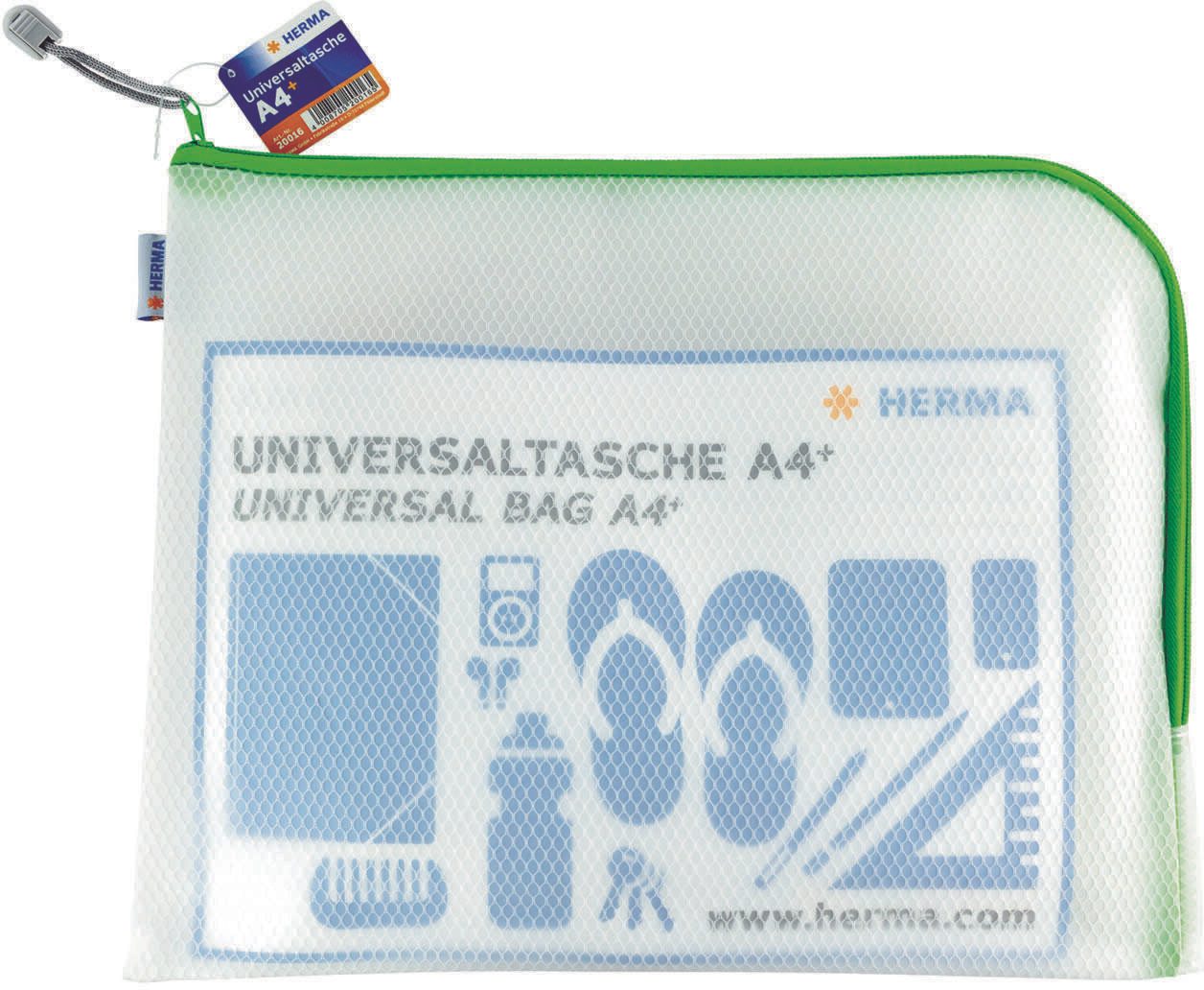 Entdecke jetzt die praktischen HERMA Reißverschlussbeutel Herma Universalt. A4+ gn und organisiere deine Unterlagen auf eine einfache und effiziente Weise. Transparent, langlebig und vielseitig einsetzbar - die perfekte Lösung für deine Aufbewahrungsbedürfnisse.