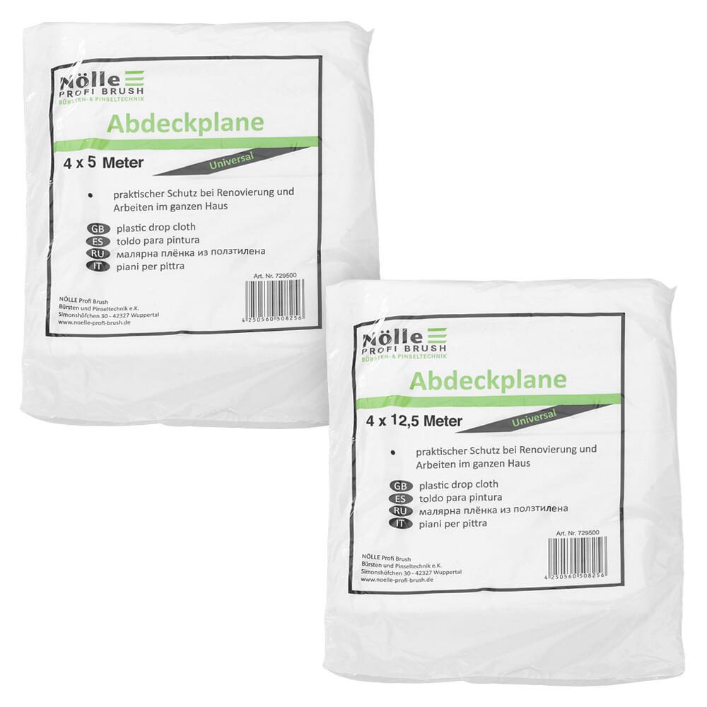 Die Nölle Abdeckfolie ist die ideale Lösung zum Schutz Ihrer Oberflächen und Gegenstände. Mit den großzügigen Maßen von 4,0 x 5,0 m bietet sie ausreichend Fläche, um Möbel, Böden oder andere Objekte während Renovierungsarbeiten, Malerprojekten oder Umzügen abzudecken. Diese hochwertige Folie hat eine Stärke von 6 Mikron, was sie robust und gleichzeitig flexibel macht. Sie lässt sich mühelos handhaben und anpassen, um den spezifischen Anforderungen Ihres Projektes gerecht zu werden. Die Abdeckfolie ist in einem klassischen Weiß gehalten, was nicht nur ästhetisch ansprechend ist, sondern auch eine gute Sichtbarkeit für eventuelle Farbspritzer oder Schmutz bietet. Dadurch können Sie sicherstellen, dass Ihre Arbeitsumgebung sauber bleibt und nach Abschluss der Arbeiten schnell wieder in ihren ursprünglichen Zustand versetzt werden kann. Hergestellt aus strapazierfähigem Folienmaterial, gewährleistet die Nölle Abdeckfolie einen zuverlässigen Schutz gegen Staub, Schmutz und Feuchtigkeit. Sie ist besonders nützlich für Handwerker, Maler und Heimwerker, die Wert auf Sauberkeit und Ordnung legen. Durch die Verwendung dieser Folie können Sie nicht nur Zeit bei der Reinigung sparen, sondern auch die Lebensdauer Ihrer Möbel und Böden verlängern. Die Nölle Abdeckfolie ist nicht nur praktisch, sondern auch vielseitig einsetzbar. Egal, ob Sie sie für Innen- oder Außenanwendungen benötigen, sie ist eine einfache und effektive Lösung, die Ihnen hilft, Ihre Projekte effizient umzusetzen. Vertrauen Sie auf die Qualität von Nölle und machen Sie Ihre Arbeiten einfacher und sauberer mit dieser hochwertigen Abdeckfolie.Technische Daten