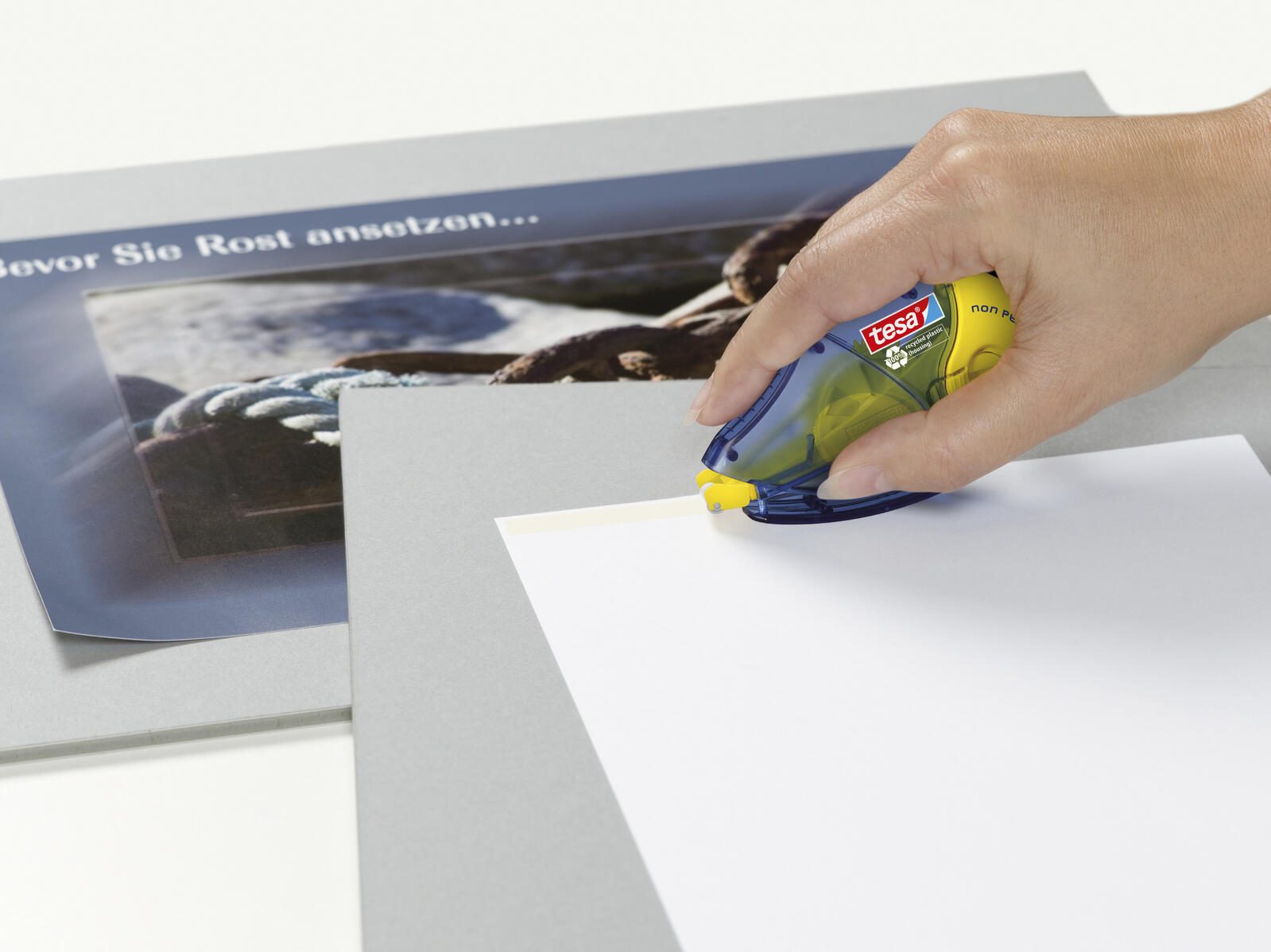 Der tesa Kleberoller ablösbar in Blau ist ein unverzichtbares Werkzeug für alle, die sauber und einfach kleben möchten. Die spezielle Formulierung dieses Kleberollers macht ihn auswaschbar, geruchsarm und lösungsmittelfrei, was ihn besonders umwelt- und nutzerfreundlich macht. Dank seiner Nachfüllbarkeit ist er zudem eine nachhaltige Lösung. Mit einer Bandbreite von 8,4 mm eignet sich dieser Kleberoller ideal für präzises Kleben. Die großzügige Bandlänge von 14 m sorgt dafür, dass du lange Freude an diesem Produkt hast, bevor eine neue Nachfüllung erforderlich ist. Der tesa Kleberoller ablösbar eignet sich perfekt für eine Vielzahl von Materialien, darunter Fotos, Papier und Pappe. Egal, ob du kreativ arbeitest, Scrapbooking betreibst oder einfach Dokumente zusammenfügst, dieser Kleberoller ist vielseitig einsetzbar. Hergestellt von tesa, einem renommierten Hersteller für hochwertige Klebelösungen, garantiert dieser ablösbare Kleberoller zuverlässige Haftung und einfache Entfernung, ohne Rückstände zu hinterlassen. Seine blaue Farbe macht ihn nicht nur praktisch, sondern auch optisch ansprechend.Technische Daten