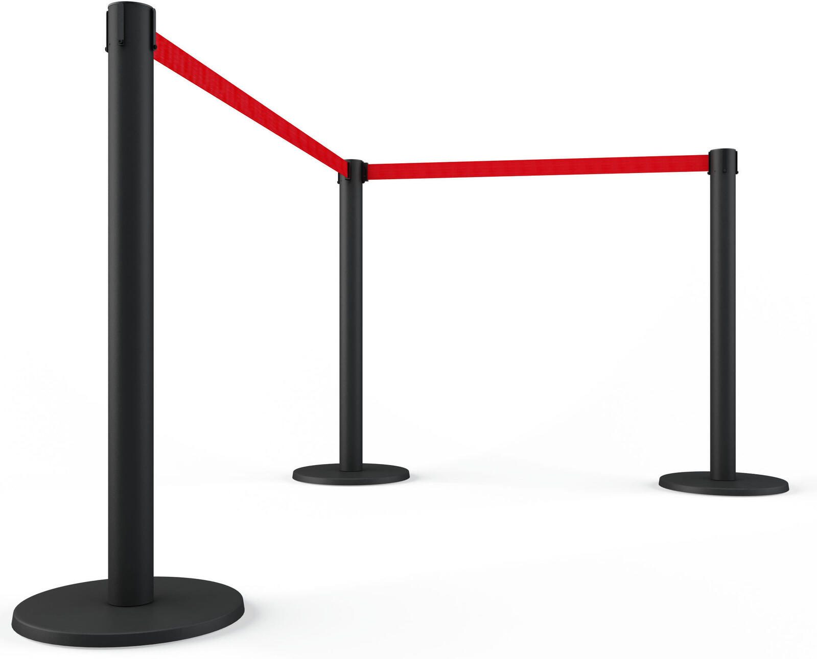 Hergestellt aus hochwertigem Metall und Kunststoff vereint dieser Pfosten Langlebigkeit mit ansprechendem Aussehen. Die schwarze Farbe mit roten Akzenten verleiht ihm eine moderne und professionelle Optik, die jede Umgebung aufwertet.