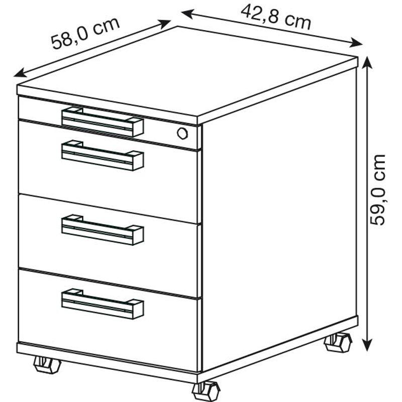 Die drei Fächer bieten ausreichend Platz für Dokumente, Schreibwaren und persönliche Gegenstände. Der praktische Relinggriff aus Stahl sorgt für eine einfache Handhabung und ermöglicht dir ein müheloses Ziehen der Schubladen. Der Rollcontainer ist nicht nur funktional, sondern auch ein stilvolles Möbelstück, das deinen Arbeitsplatz aufwertet.
