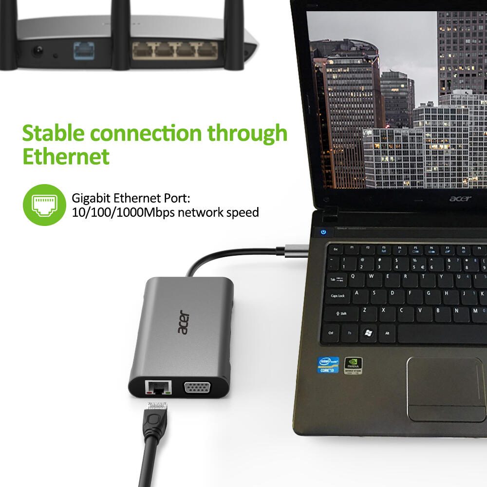 Abgekündigt Acer 11-in-1 Mini Dock USB Type-C Dongle 2x USB 3.0, 2x USB 2.0, HDMI, VGA, RJ45, type-C PD, SD-Card, Klinke 3,5