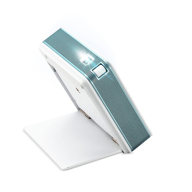 Außergewöhnliches DesignMit dem praktischen integrierten Standfuß können Sie all Ihre Inhalte aus noch mehr Winkeln anzeigen lassen und projizieren – selbst an die Decke. Bei Nichtgebrauch können Sie den Standfuß im Projektor selbst unterbringen. |