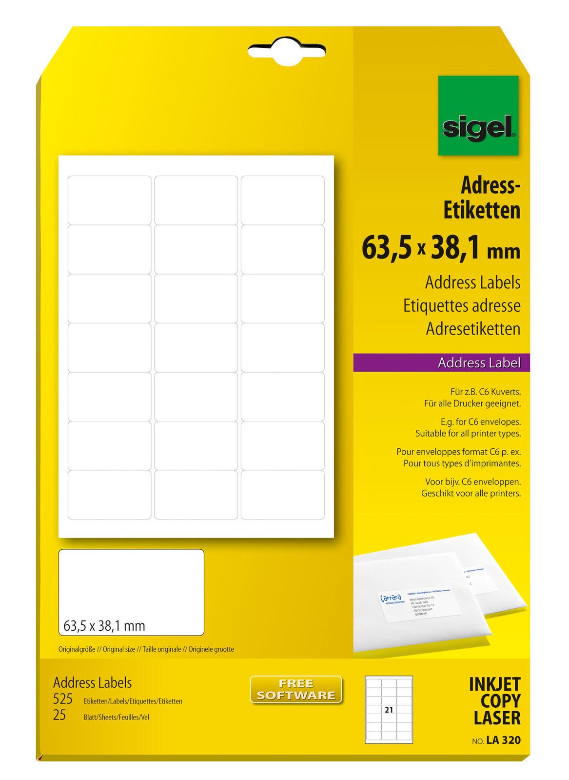 SIGEL Adressetiketten LA320 weiß 63,5 x 38,1 mm