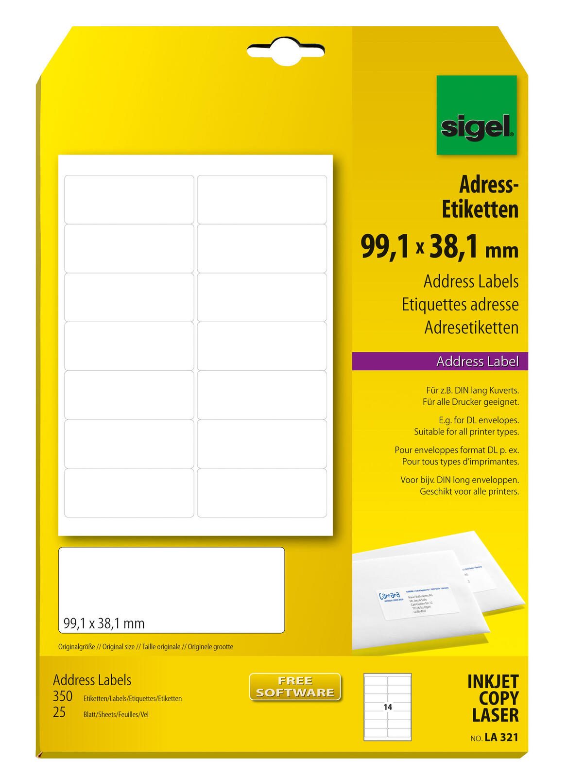SIGEL Adressetiketten LA321 weiß 99,1 x 38,1 mm