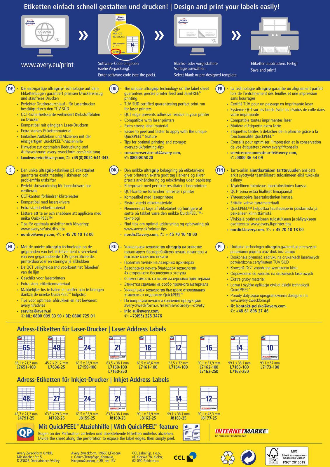 Die AVERY Zweckform Adressetiketten L7173-100 in der Größe 99,1 x 57,0 mm sind die ideale Lösung für all deine Adressierungsbedürfnisse. Diese hochwertigen Etiketten sind in einem praktischen Pack mit 1000 Stück erhältlich, sodass du ausreichend Material für deine Projekte zur Verfügung hast. Die Etiketten sind aus hochwertigem, holzfreiem Papier gefertigt und bieten eine matte Oberfläche, die dir ermöglicht, deine Adressen klar und lesbar zu drucken. Die rechteckige Form der Etiketten mit abgerundeten Ecken sorgt für ein professionelles Erscheinungsbild und passt perfekt zu jedem Brief oder Paket. Dank der selbstklebenden Rückseite lassen sich die Etiketten mühelos anbringen und bieten eine zuverlässige Haftung. Besonders praktisch ist die Ablösehilfe, die es dir ermöglicht, die Etiketten ohne Rückstände wieder zu entfernen, falls du eine Anpassung vornehmen musst. Die AVERY Zweckform Adressetiketten sind chlorfrei gebleicht und lösemittelfrei, wodurch sie umweltfreundlicher sind als viele herkömmliche Etiketten. Sie sind auf einem A4-Bogen angeordnet, was die Handhabung und den Druck erleichtert. Darüber hinaus sind die Etiketten nicht blickdicht, was dir die Möglichkeit gibt, deine Druckergebnisse zu sehen und sicherzustellen, dass alles perfekt aussieht. Egal, ob du die Etiketten für den Versand von Paketen, für die Organisation im Büro oder für persönliche Projekte benötigst, die AVERY Zweckform Adressetiketten L7173-100 bieten dir die Qualität und Zuverlässigkeit, die du erwartest. Mit diesen Etiketten wird das Adressieren zum Kinderspiel und sorgt für einen professionellen Eindruck bei deinen Empfängern.Technische Daten