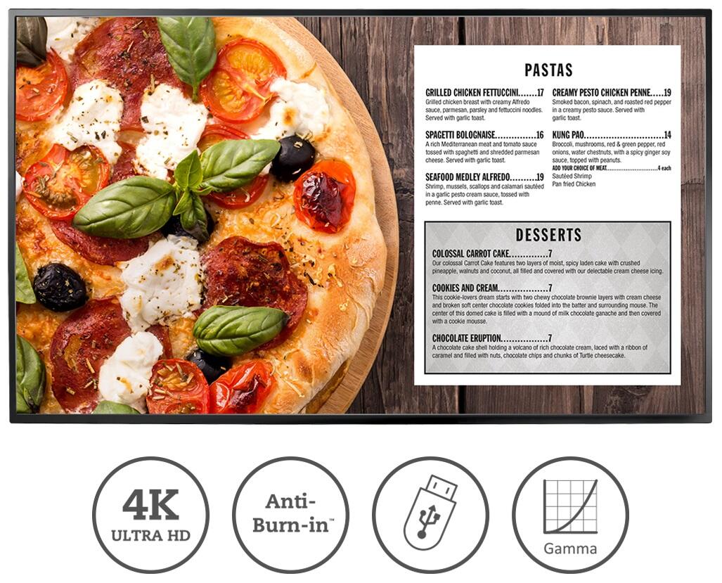 4K-UHD, VA, 5ms, 350cd/m², HDMI, VGA, DVI, LAN