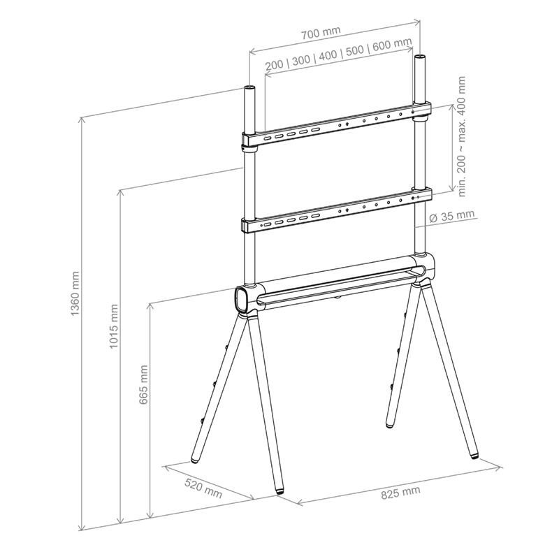 Es eignet sich für Bildschirme mit einer Bildschirmdiagonale von 40 – 70“ | 102 – 178 cm. Die Montage erfolgt in Landscape-Ausrichtung. Die VESA-Norm wird dabei von min. 200 x 200 mm bis max. 600 x 400 mm unterstützt.