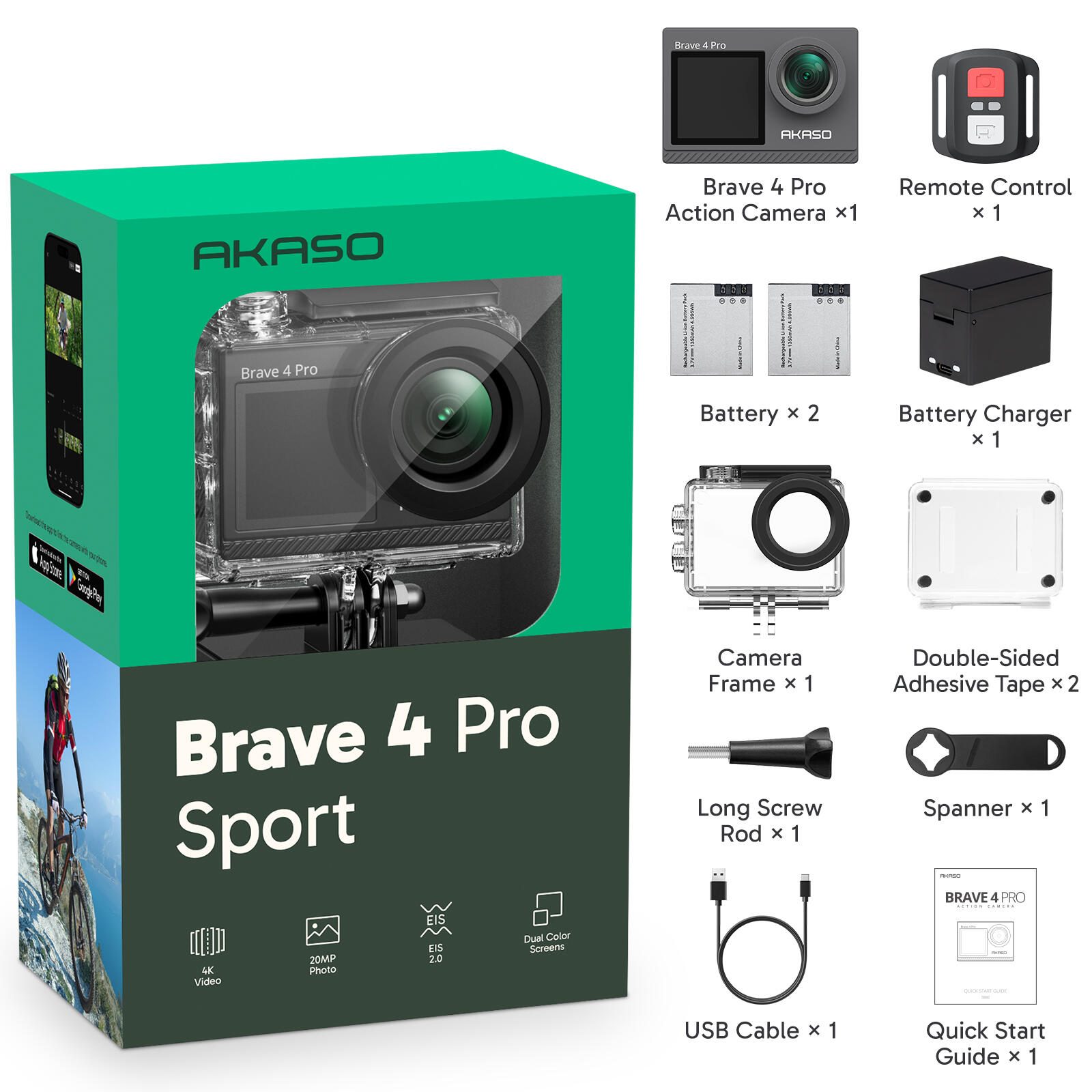 Akaso Brave 4 Pro Action Cam Sport Kit