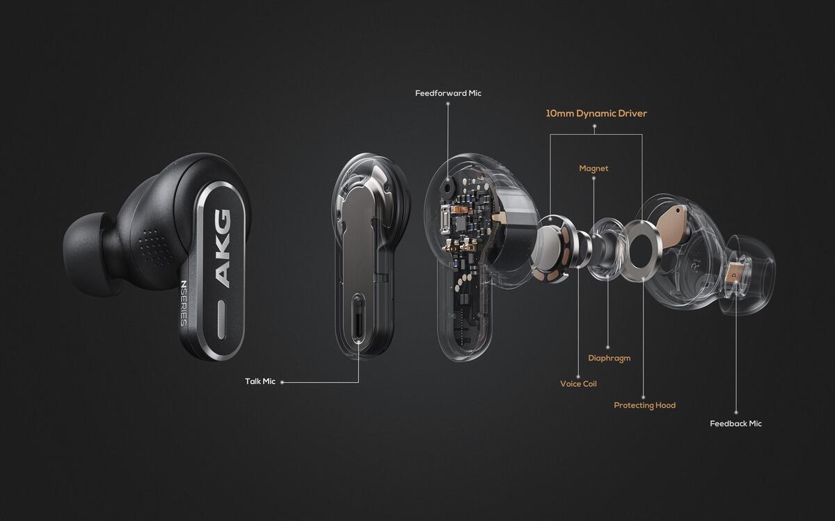 Die 10-mm-Dynamiktreiber mit DLC-beschichteten Membranen bieten detaillierten, dynamischen Klang mit geringer Verzerrung und schnellem Ansprechverhalten. Der Bass ist kräftig und präzise, Stimmen klingen klar mit realistischen Höhen. Die AKG N5 Hybrid Ohrhörer unterstützen Hi-Res Audio Wireless. Dank LDAC wird ein herausragender 24-Bit-Hochleistungssound erzeugt, der jedes Detail in atemberaubender Auflösung wiedergibt, nahe an Studioqualität.