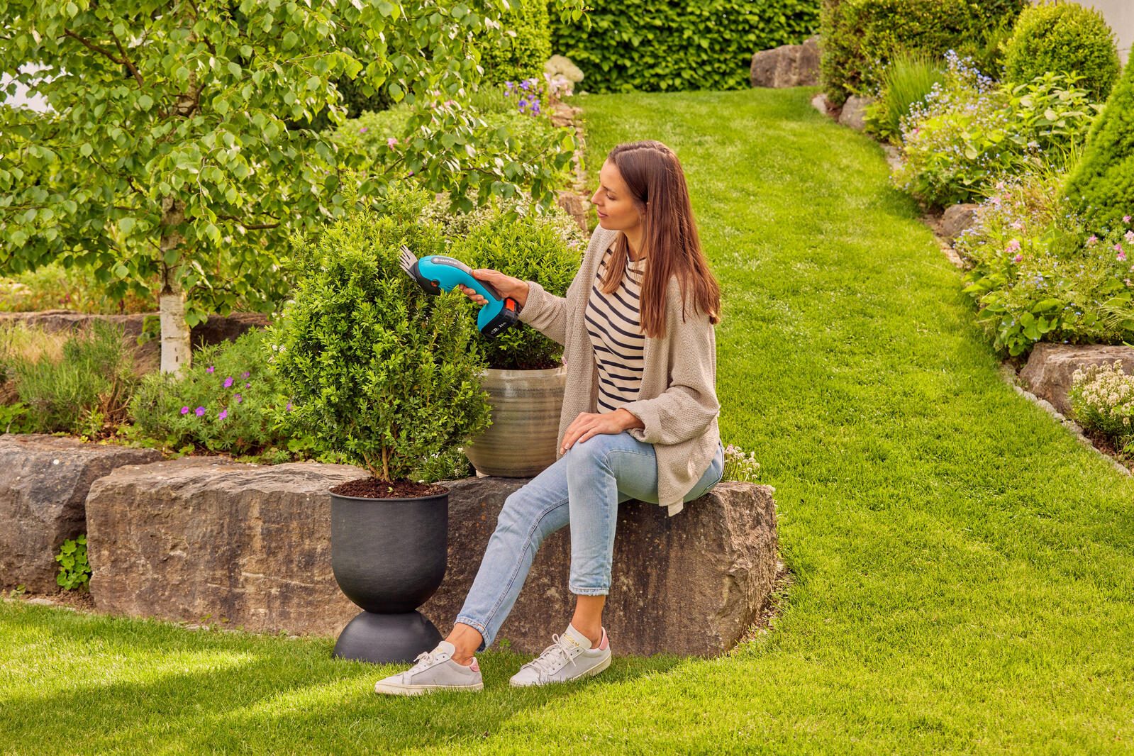 - Die GARDENA Akku-Gras- und Strauchschere PowerCut 20/18V P4A Solo vereint Präzision in einem hochwertigen Messer und sorgt so für eine überragende Schnittleistung und effizientes Trimmen.