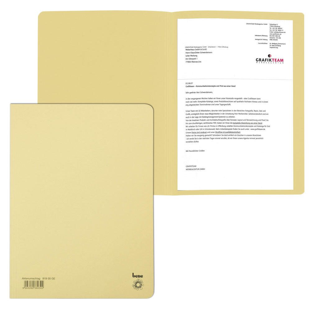 Der bene Aktendeckel DIN A4 in strahlendem Gelb ist die perfekte Lösung für deine Büroorganisation. Mit einem Papiergewicht von 250 g/m² bietet dieser Aktendeckel nicht nur Stabilität, sondern auch einen ansprechenden Schutz für deine Dokumente. Er ist speziell für das Format DIN A4 konzipiert und ermöglicht es dir, bis zu 250 Blatt sicher und ordentlich zu verstauen. Hergestellt aus hochwertigem Recycling-Karton, ist dieser Aktendeckel nicht nur funktional, sondern auch umweltfreundlich. Die Verwendung von recyceltem Material macht ihn zu einer nachhaltigen Wahl für umweltbewusste Verbraucher. Die auffällige gelbe Farbe sorgt dafür, dass deine Unterlagen sofort ins Auge fallen und erleichtert das schnelle Finden von wichtigen Dokumenten. Mit einer Packung von 25 Stück hast du genügend Vorrat, um dein Büro oder Home Office effizient zu organisieren. Die Aktendeckel sind recyclebar, was bedeutet, dass du einen Beitrag zur Reduzierung von Abfall leisten kannst, während du gleichzeitig für Ordnung sorgst. Egal, ob du wichtige Verträge, Präsentationen oder andere Unterlagen ablegen möchtest, der bene Aktendeckel DIN A4 gelb bietet dir die ideale Lösung. Vertraue auf die Qualität von bene und genieße die Vorteile eines durchdachten Designs, das sowohl ästhetisch als auch praktisch ist.Technische Daten