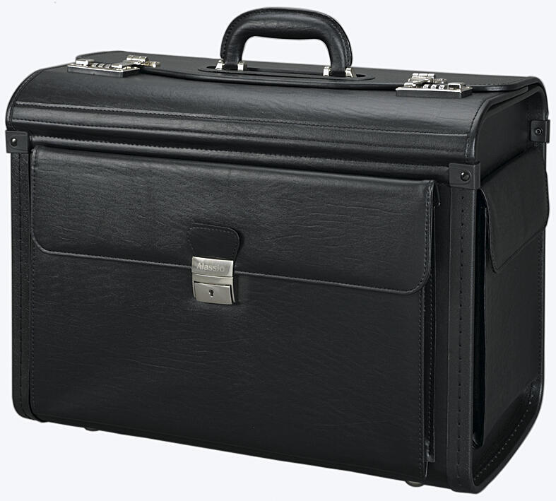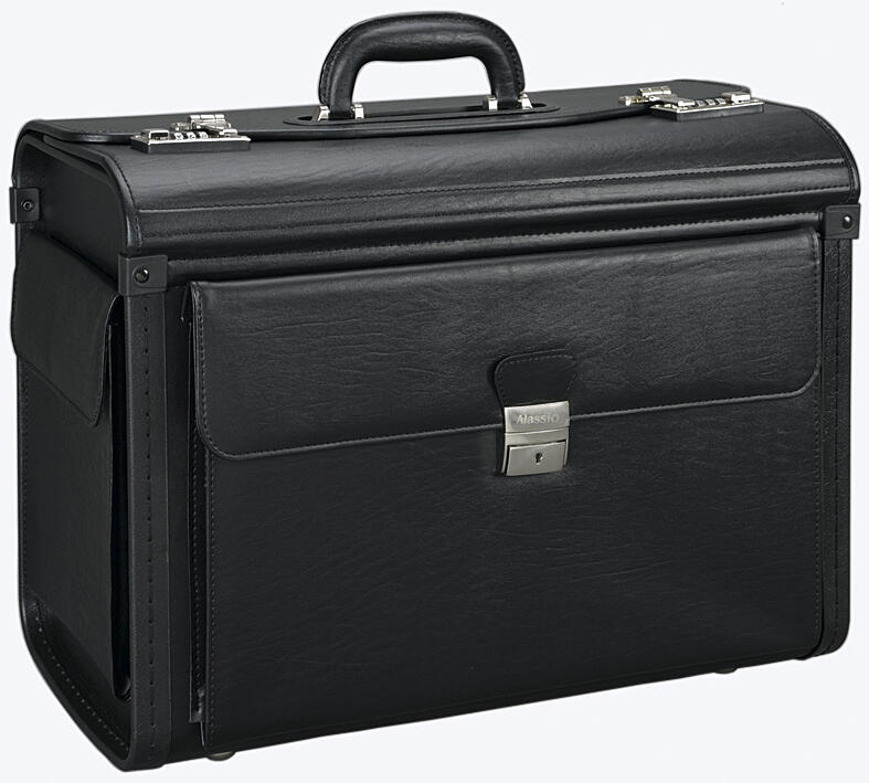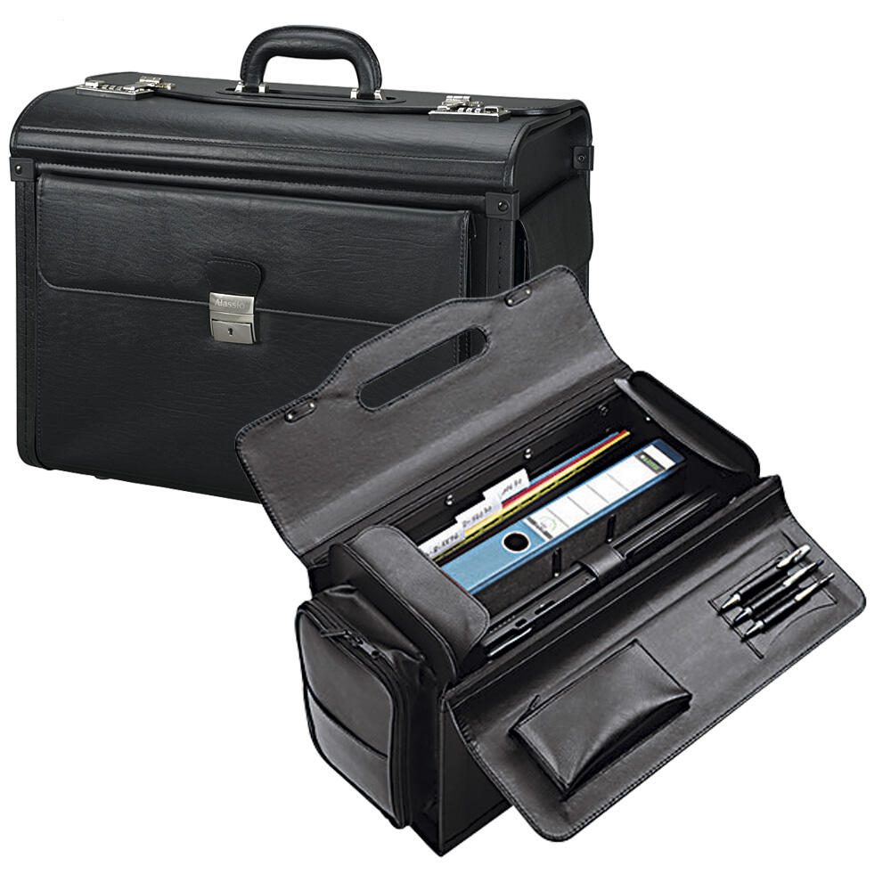 Der Alassio Pilotenkoffer VERONA in elegantem Schwarz ist die perfekte Lösung für alle, die beruflich viel unterwegs sind und dabei auf Stil und Funktionalität Wert legen. Dieser hochwertige Pilotenkoffer aus feinem Leder bietet nicht nur einen ansprechenden Look, sondern auch durchdachte Inneneinteilungen, die dir helfen, deine Unterlagen und Geräte optimal zu organisieren. Mit einem Außenmaß von 49,0 x 24,0 x 35,0 cm und einem Innenmaß von 43 cm x 20 cm x 32 cm ist der Koffer geräumig genug, um Notebooks bis zu einer Größe von 43,2 cm (17 Zoll) sowie zwei A4-Ordner sicher zu verstauen. Die durchdachte Inneneinteilung umfasst ein Visitenkartenfach, ein Reißverschluss-Etui und ausreichend Stauraum, um deine wichtigsten Unterlagen stets griffbereit zu haben. Der Pilotenkoffer verfügt über eine abschließbare Seitentasche und eine weitere Seitentasche mit einem praktischen Organizerfach, in dem du Stifte und andere kleine Utensilien sicher verstauen kannst. Das abschließbare Frontfach mit fünf Fächern sorgt dafür, dass alles an seinem Platz bleibt und schnell zugänglich ist. Die Verwendung von hochwertigem Leder verleiht dem Alassio Pilotenkoffer nicht nur Langlebigkeit, sondern auch eine edle Ausstrahlung, die in jedem beruflichen Umfeld überzeugt. Ob im Büro, beim Kundenbesuch oder auf Reisen, dieser Koffer ist ein stilvoller Begleiter, der sowohl Funktionalität als auch Eleganz vereint. Der Alassio Pilotenkoffer VERONA ist mehr als nur ein Transportmittel für deine Unterlagen; er ist ein Statement für Professionalität und Stil, das dich bei jedem Schritt unterstützt.Technische Daten